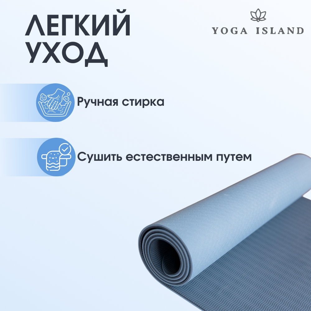 Купить Коврик для йоги и фитнеса Yoga Island, нескользящий, ТПЕ, 0.6 см, 183×61 см, голубой