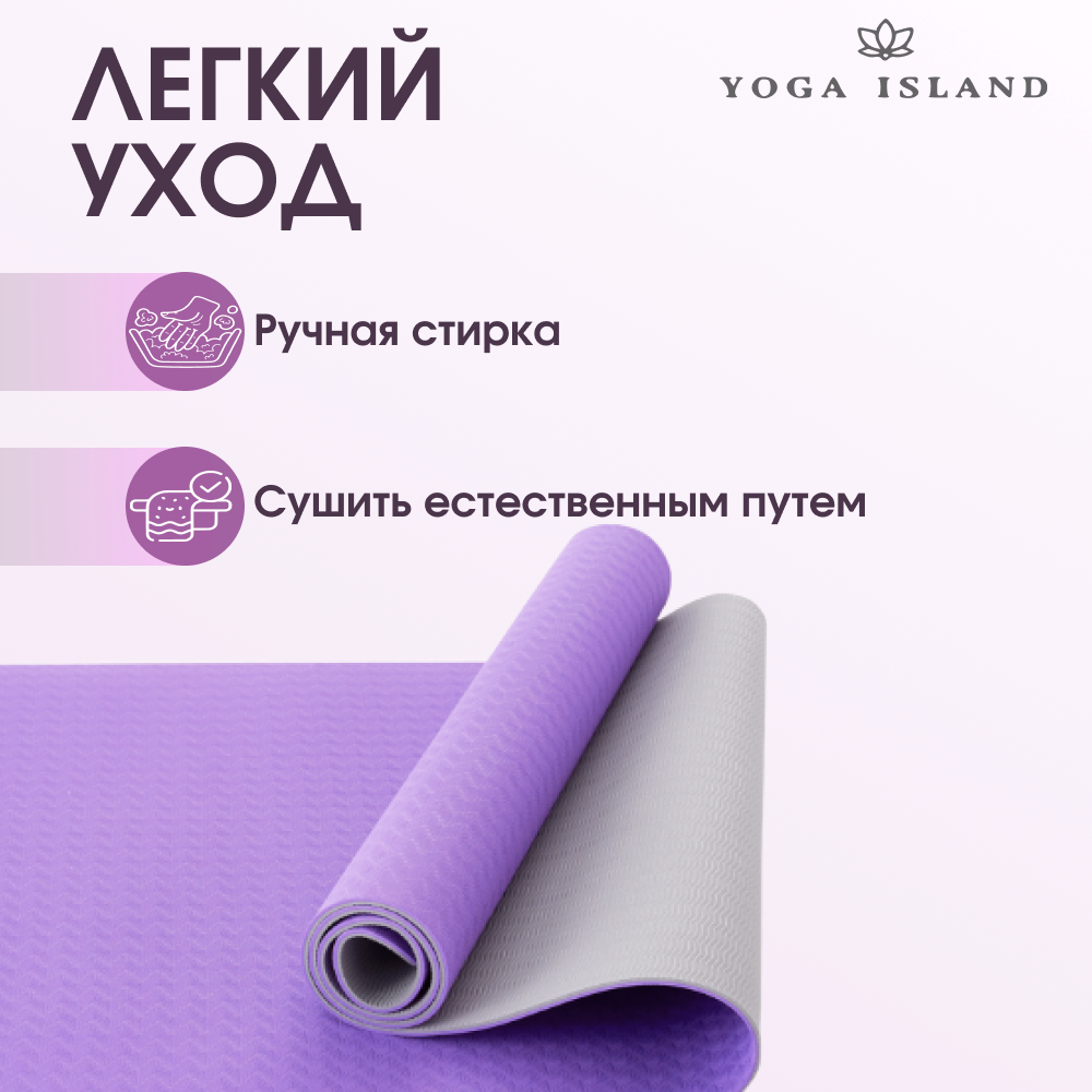 Коврик для йоги и фитнеса Yoga Island, нескользящий, ТПЕ, 0.6 см, 183×61 см, фиолетовый