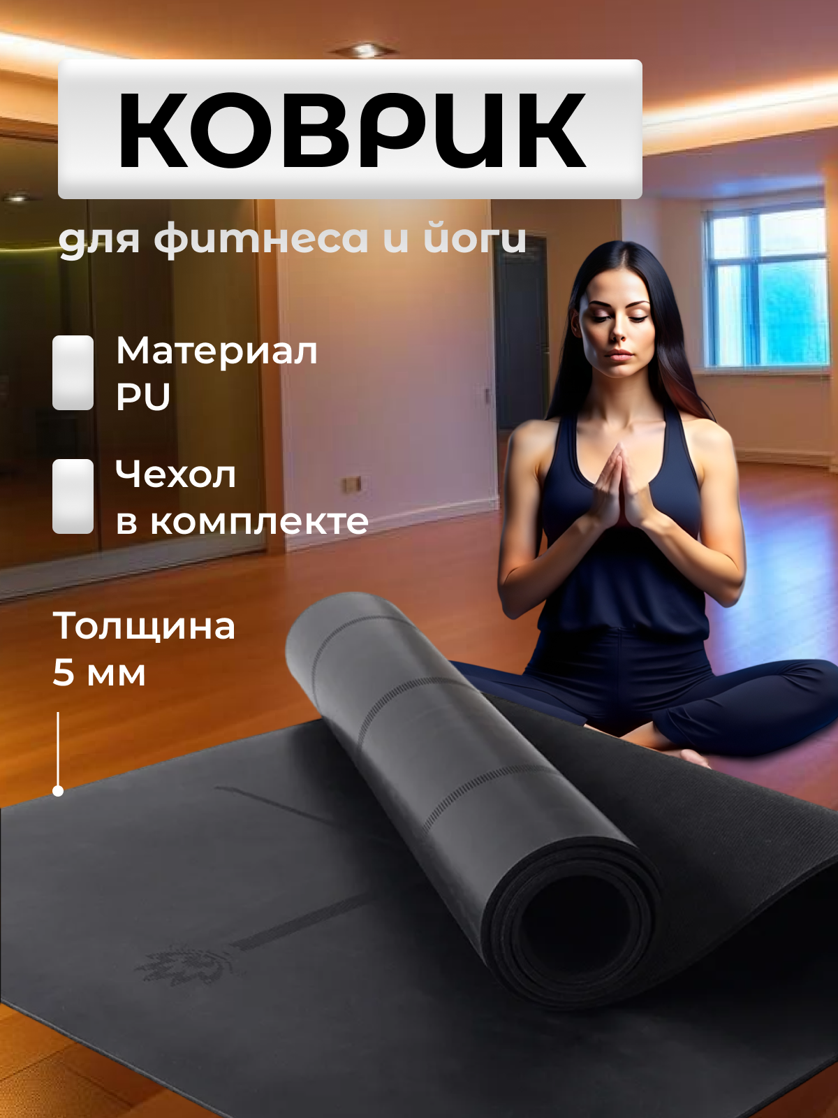 Коврик для йоги и фитнеса спортивный с разметкой черный тяжелый интересное:
