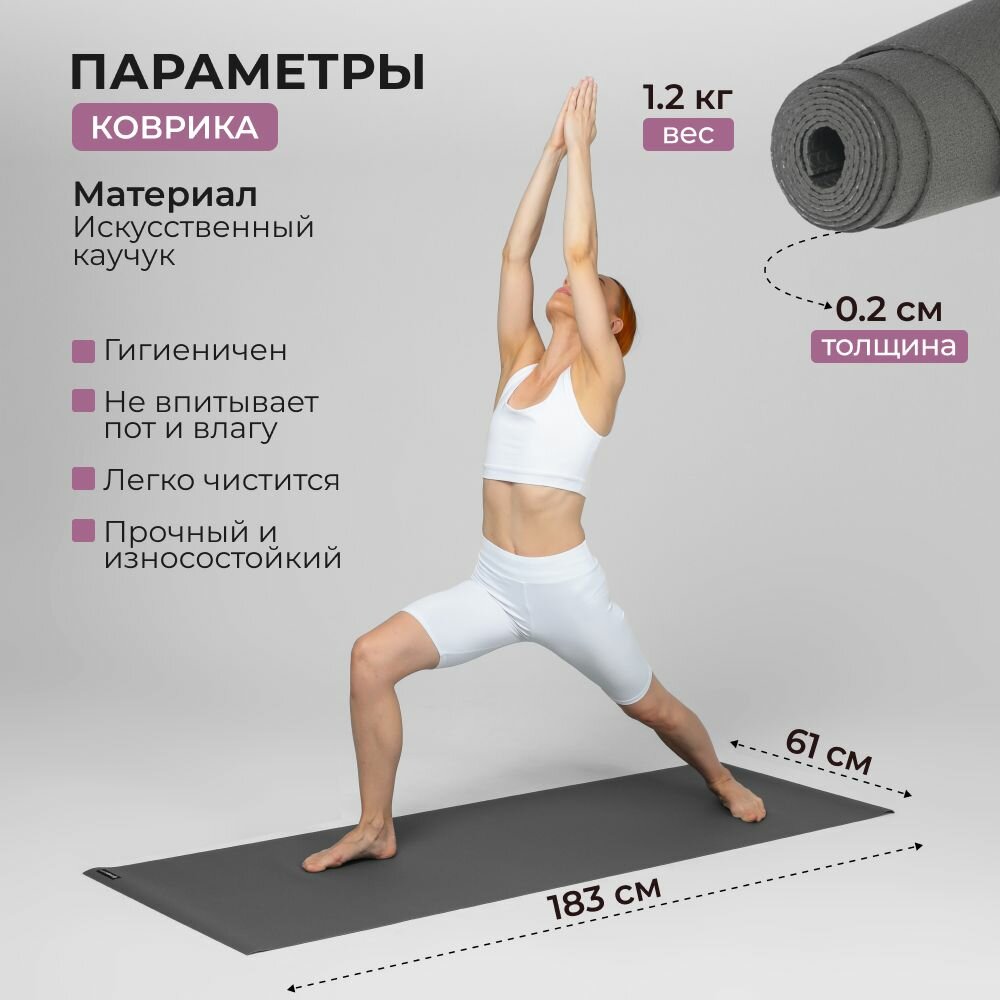 Коврик для йоги iyogasports Pro Travel, 183*61*0,2 см, серый, прочный, нескользящий интересное: