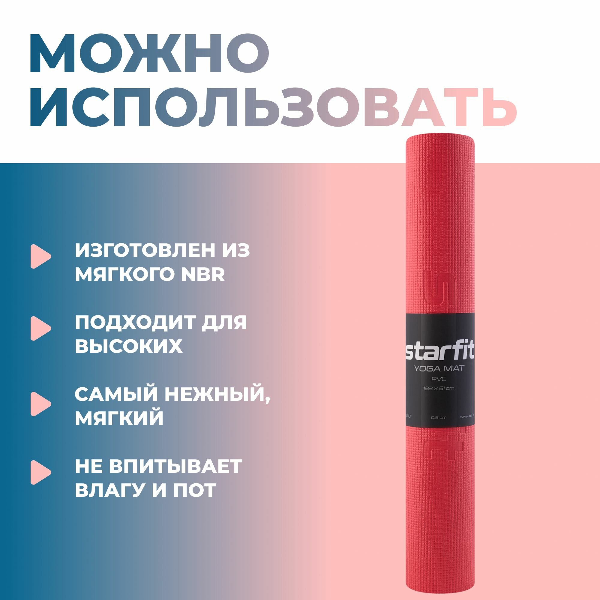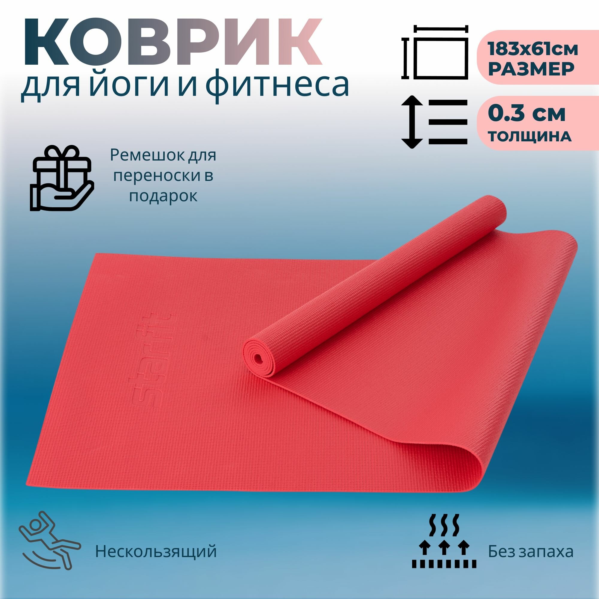 Коврик для йоги и фитнеса STARFIT FM-101 PVC, 0,3 см, 183x61 см, красный