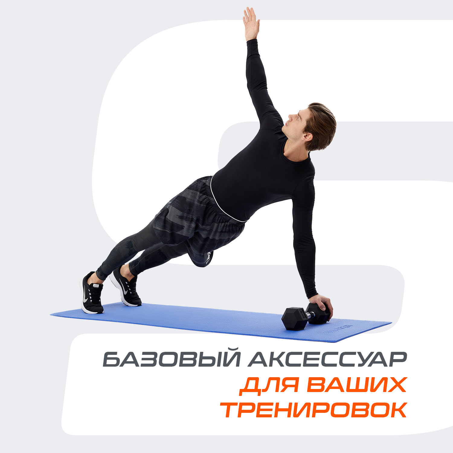 Коврик для йоги 173 х 61 х 0,5 см, цвет чёрный (1 шт.)