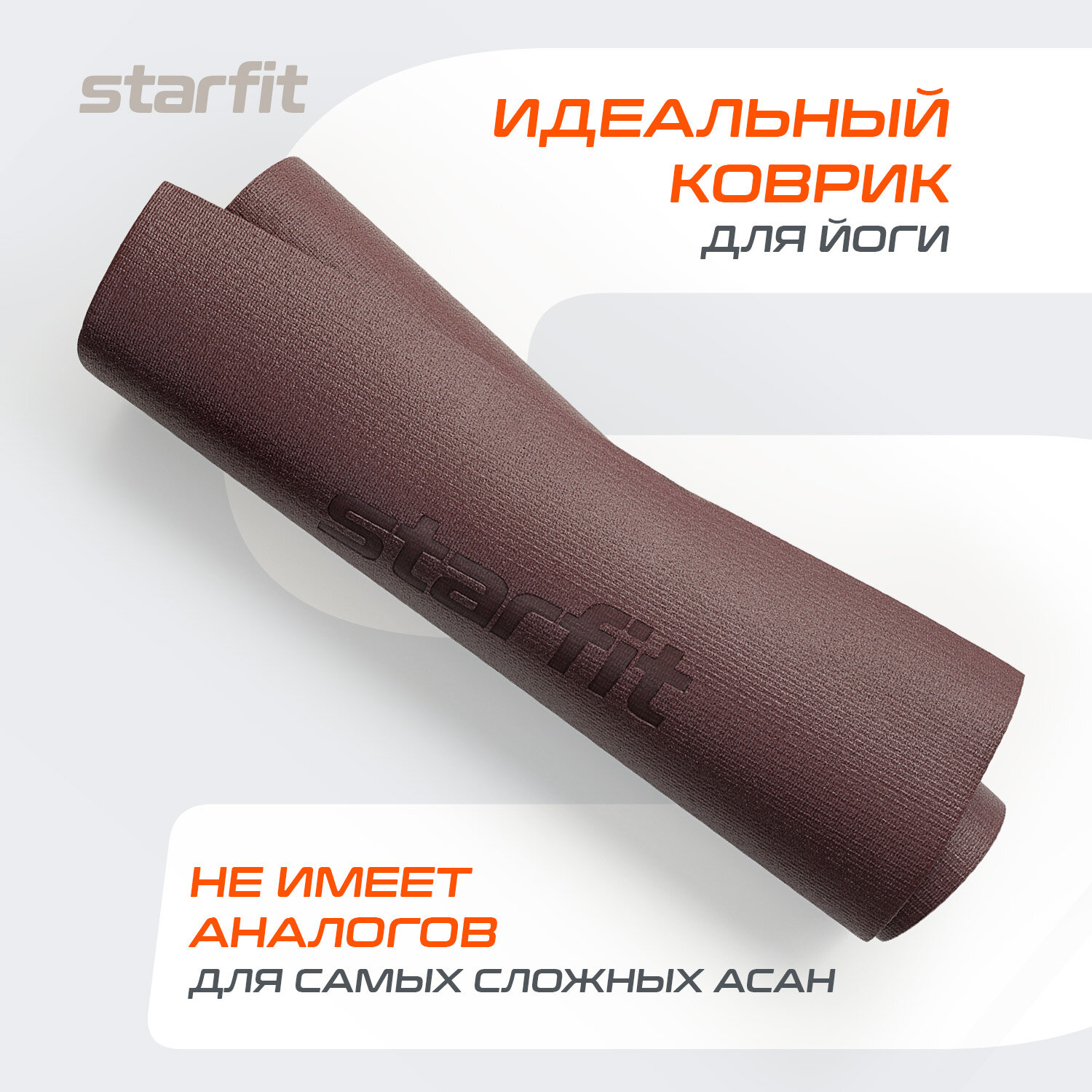 Коврик для йоги и фитнеса высокой плотности STARFIT FM-103 PVC HD, 183x61x0,4 см, индийский каштан