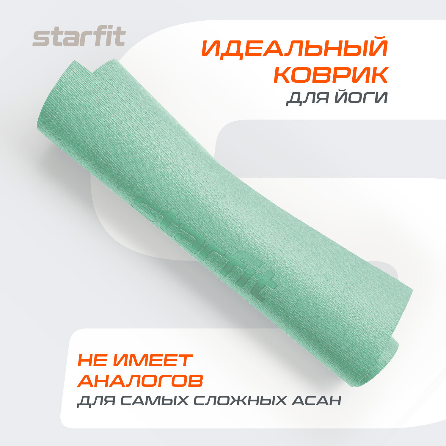 Коврик для йоги и фитн STARFIT FM-101 PVC,0.4см,183x61см, мятн, ЦБ-00001686