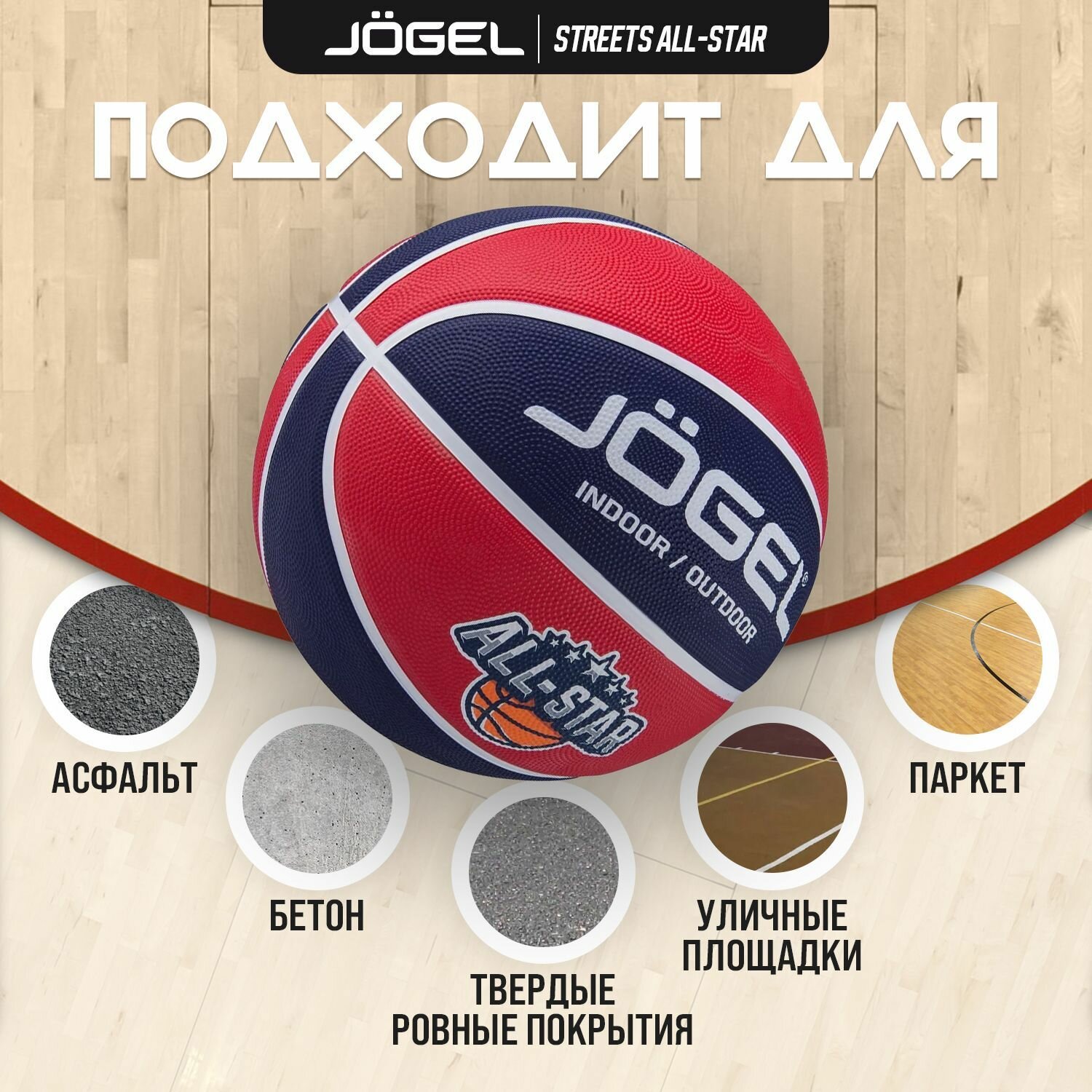 Баскетбольный мяч Jogel ALL-STAR для уличного баскетбола, размер 6