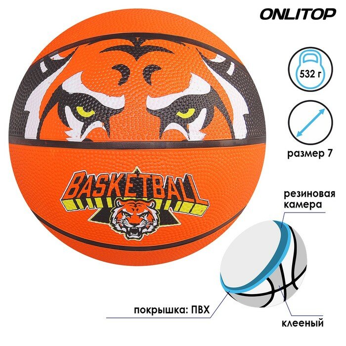 Купить ONLYTOP Баскетбольный мяч ONLYTOP «Тигр», клееный, 8 панелей, р. 7, резина, резиновая камера