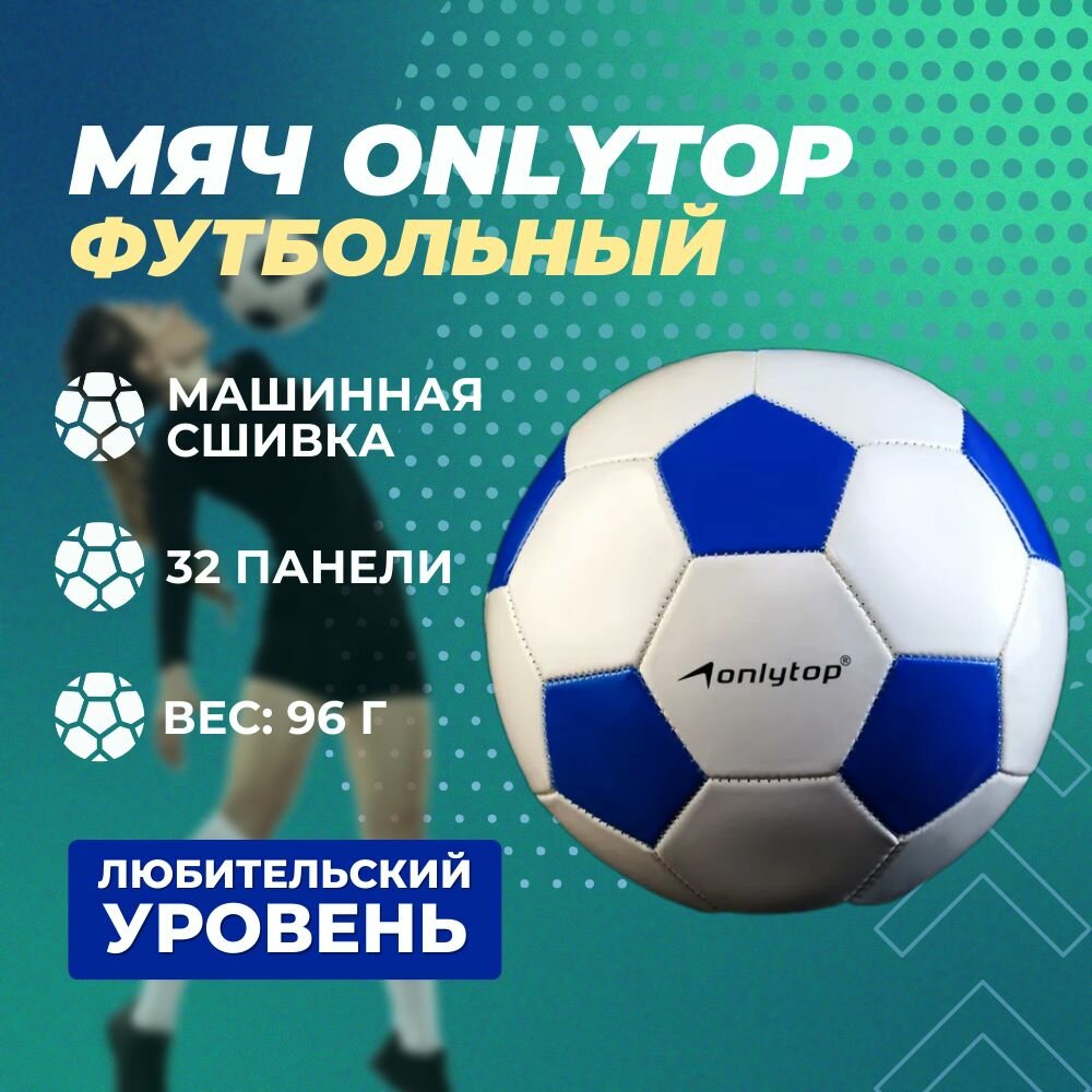 Мяч ONLYTOP "Classic", футбольный, размер 2, 32 панели, PVC, 3 подслоя, машинная сшивка, вес 96 г, цвет белый, синий