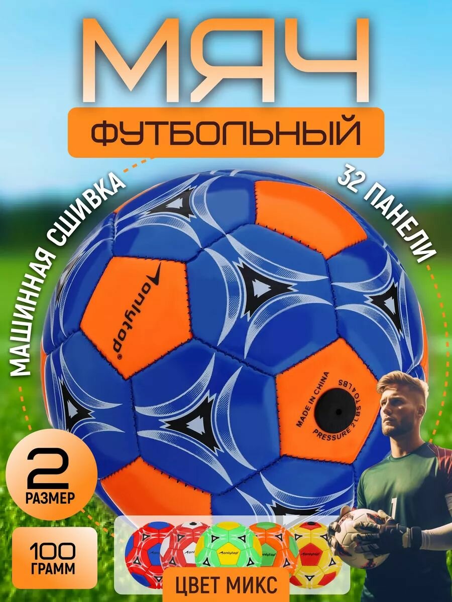 Мяч футбольный, размер 2, цвет белый, синий