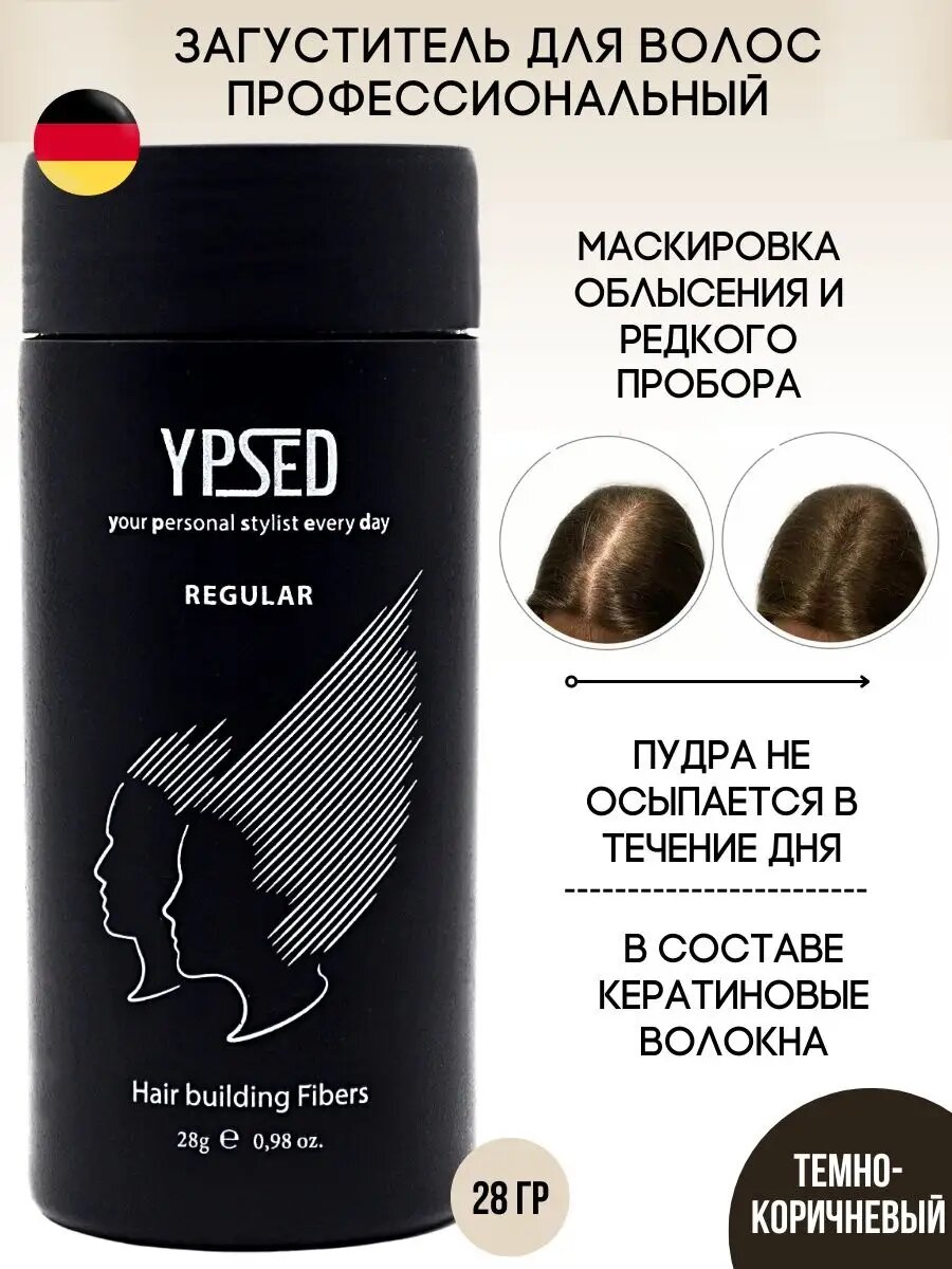 Ypsed Regular Пудра камуфляж кератиновый загуститель волос 28г темно-коричневый, шоколадный
