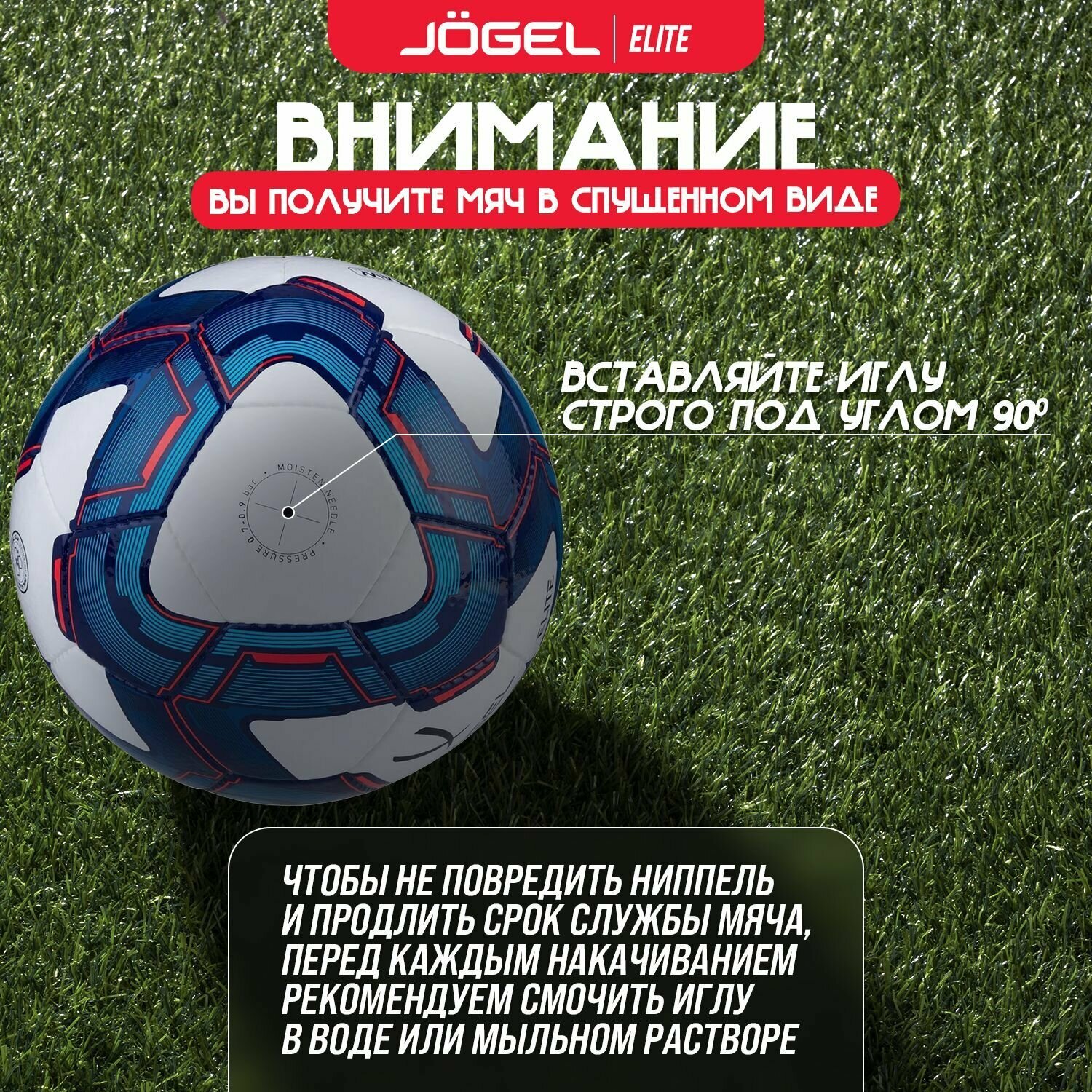 Мяч футбольный Elite, №4, белый/синий/красный, Jögel - 4