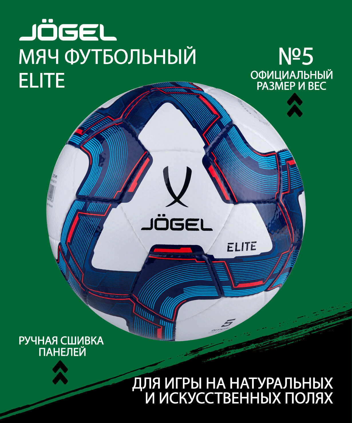 Мяч футбольный Jogel Elite тренировочный, размер 5, цвет белый/синий