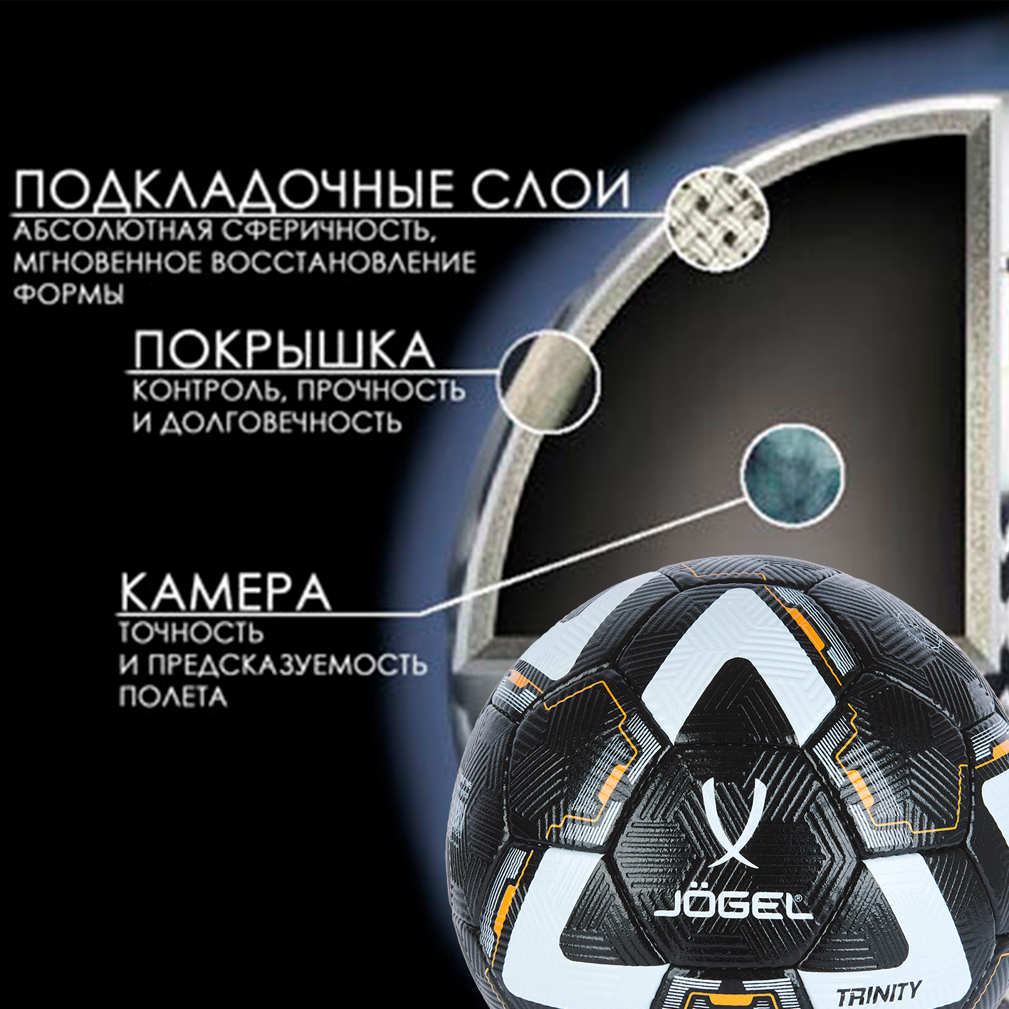 Мяч футбольный Jogel Trinity тренировочный, размер 5, цвет черный/белый
