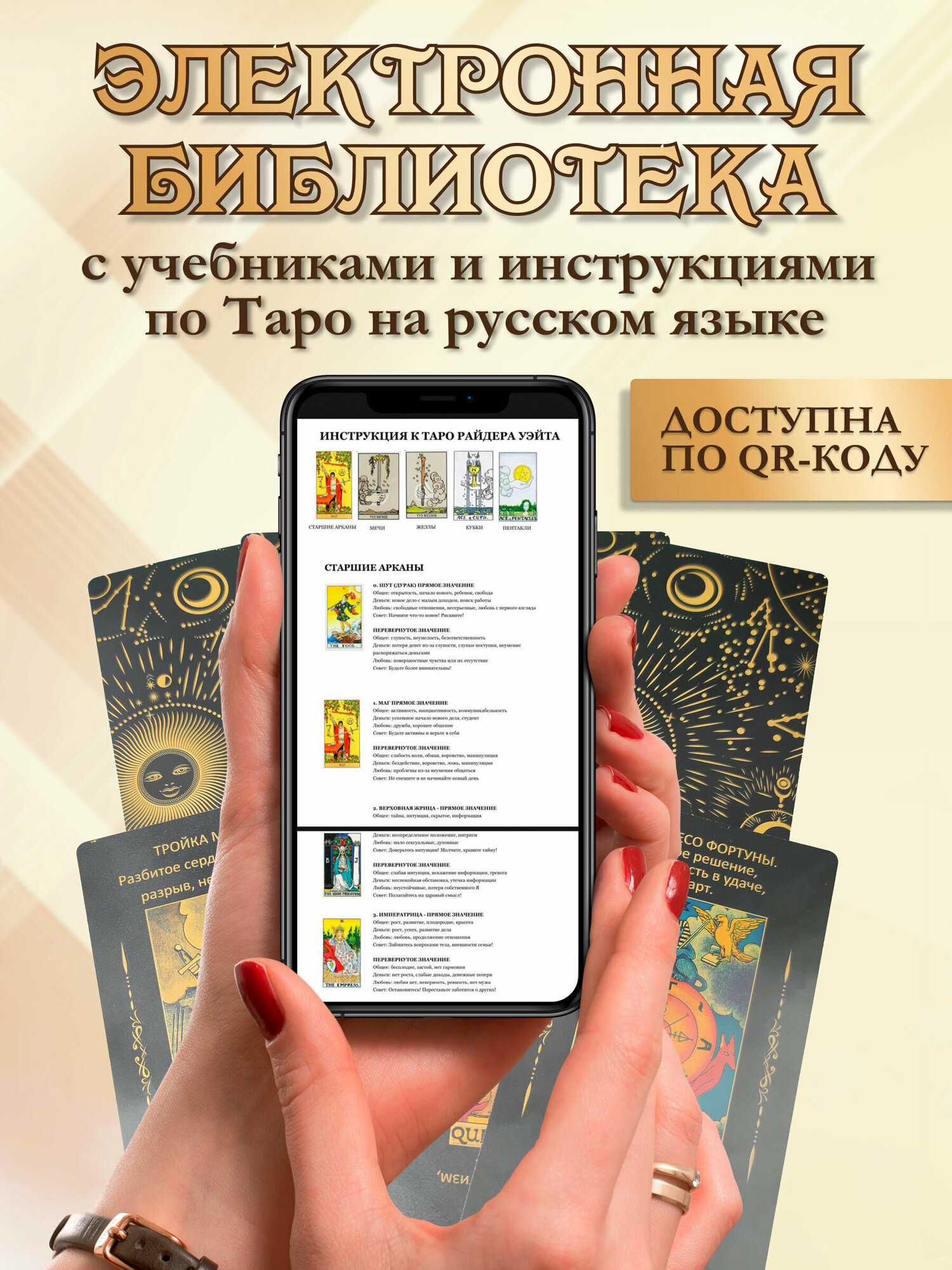 Купить Карты Таро Уэйта Обучающие Пластиковые для начинающих, 78 карт 12х7см в подарочной коробке, классические на русском языке