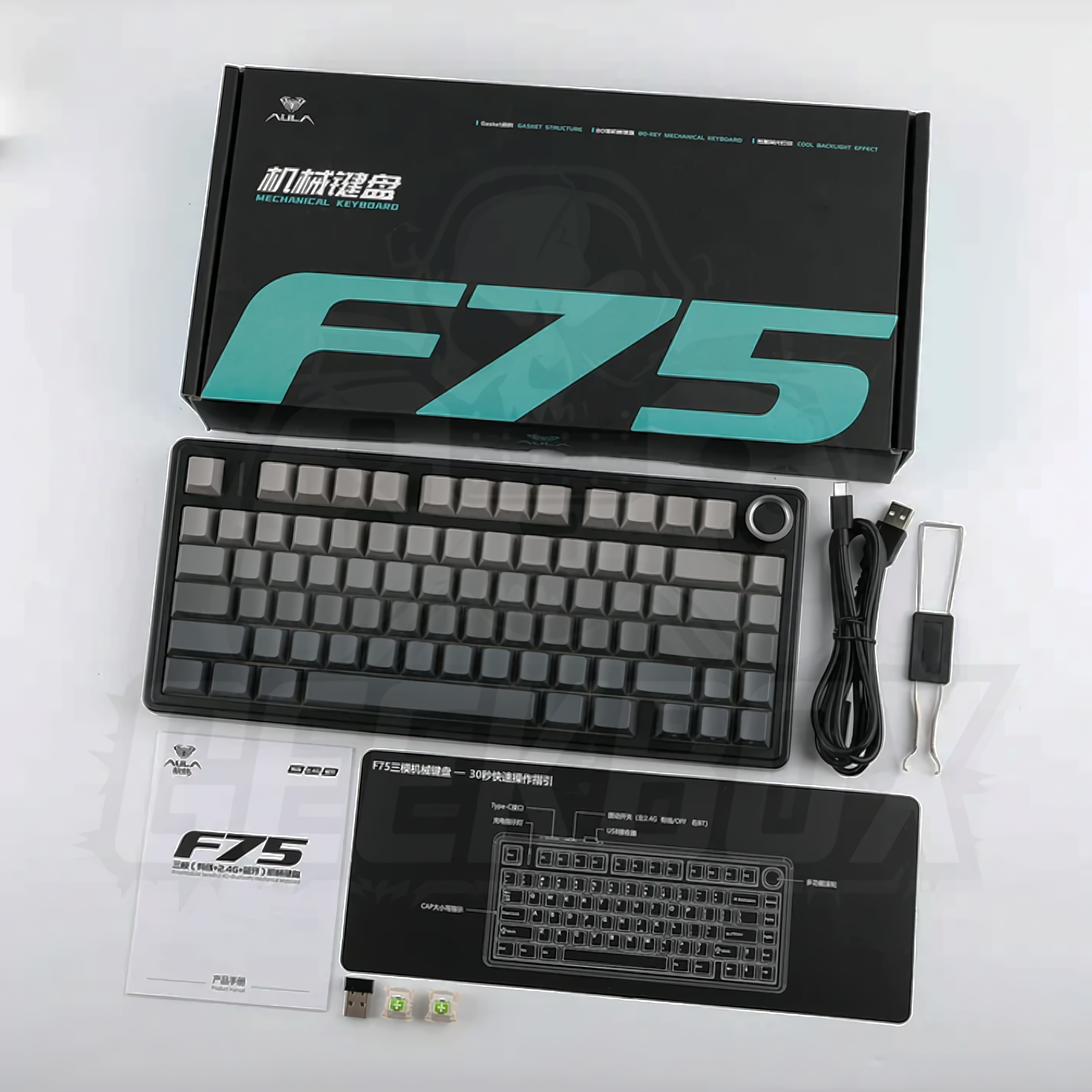 Беспроводная механическая клавиатура Aula F75, 75%, Bluetooth 5.0, 2.4Ghz, USB Type-C, Английская раскладка