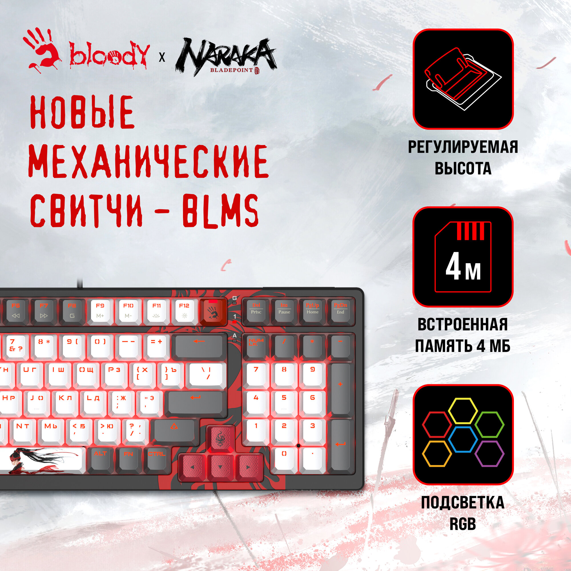 Клавиатура A4Tech Bloody S98 Naraka BLMS Plus черный/красный интересное: