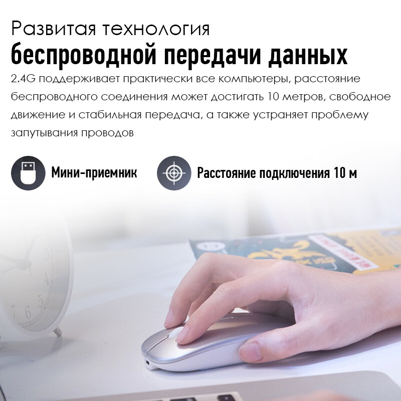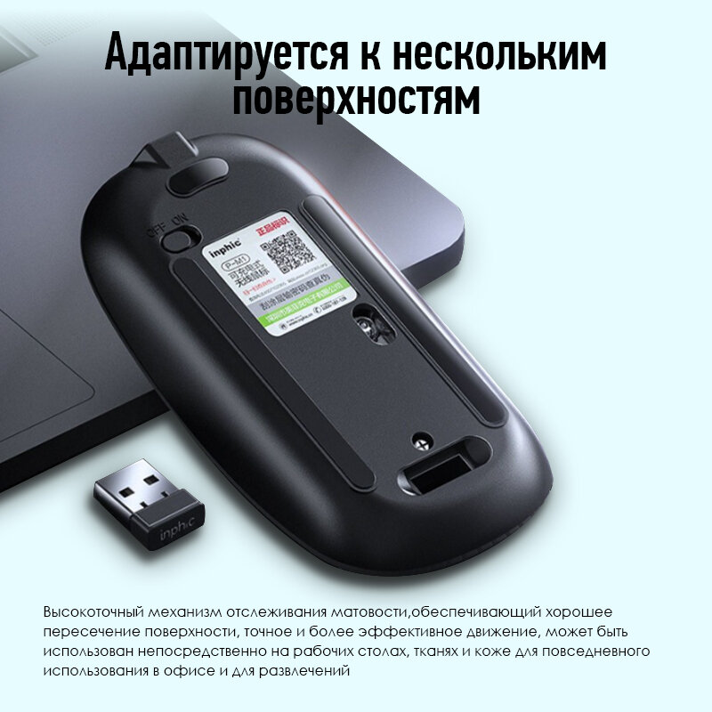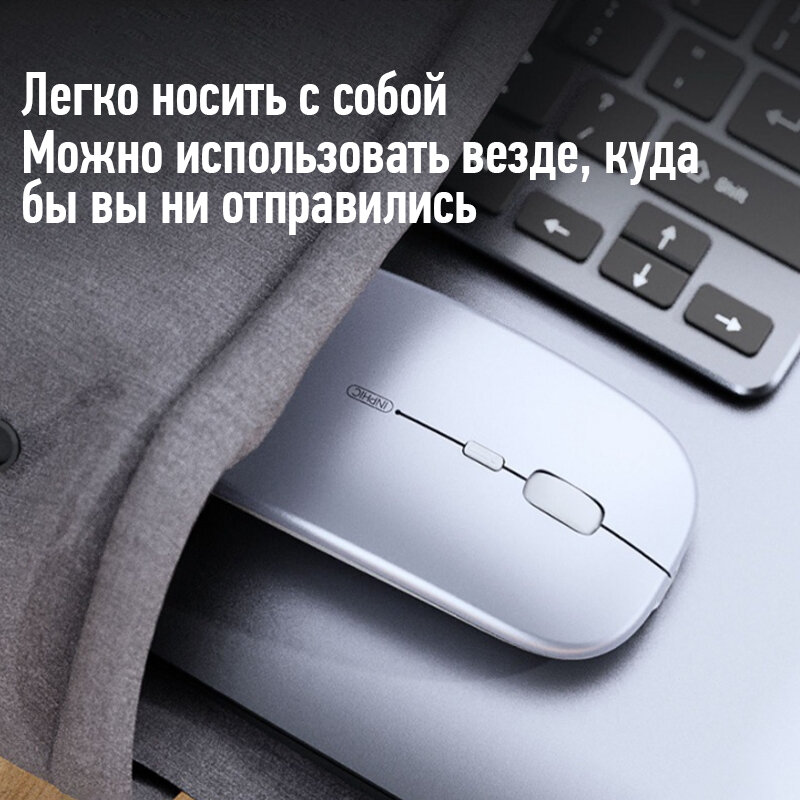 Беспроводная бесшумная мышь INPHIC M1P, с индикатором заряда, usb радиоканал, серебристый интересное: