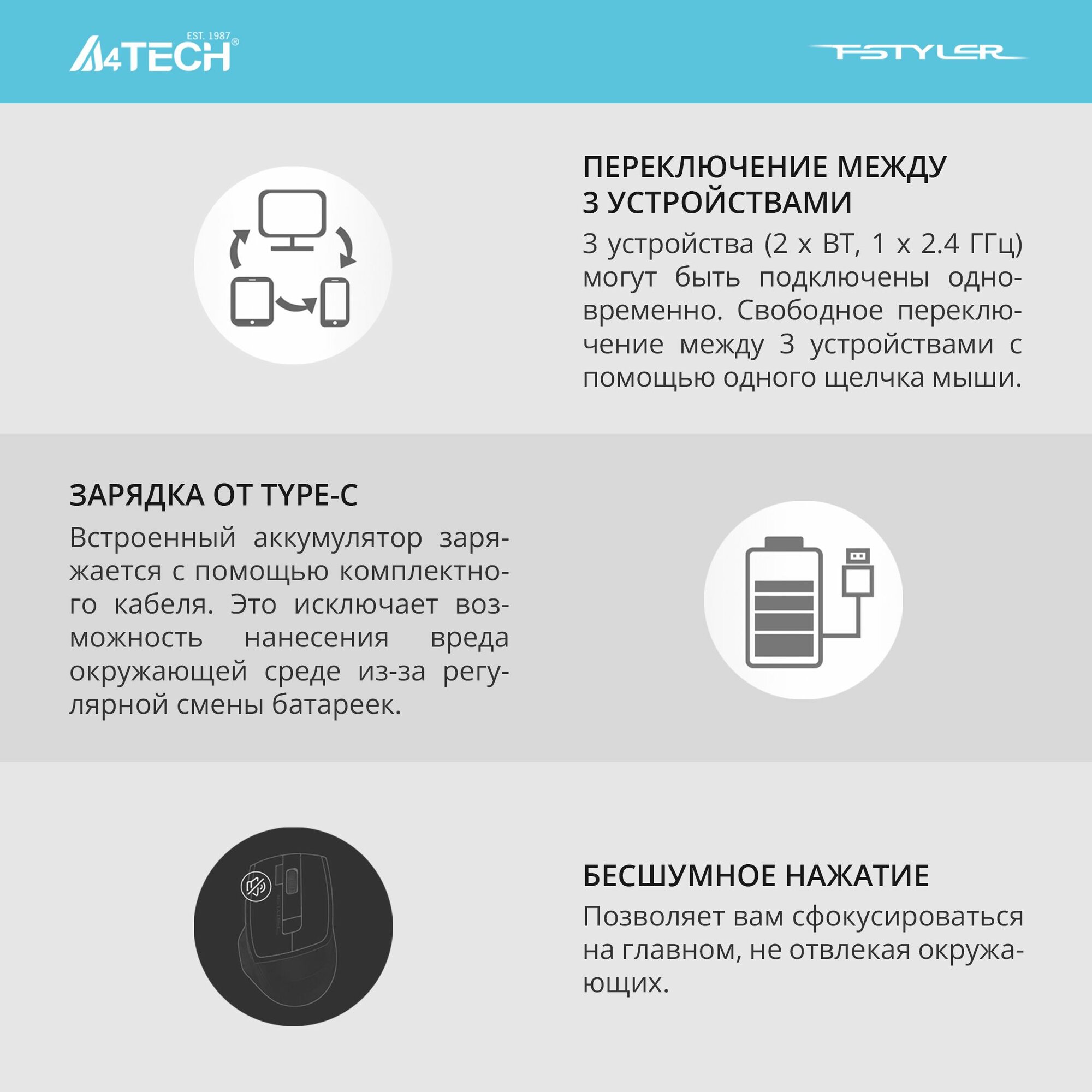 Мышь A4TECH Fstyler FB35C серый (FB35C SMOKY GREY)