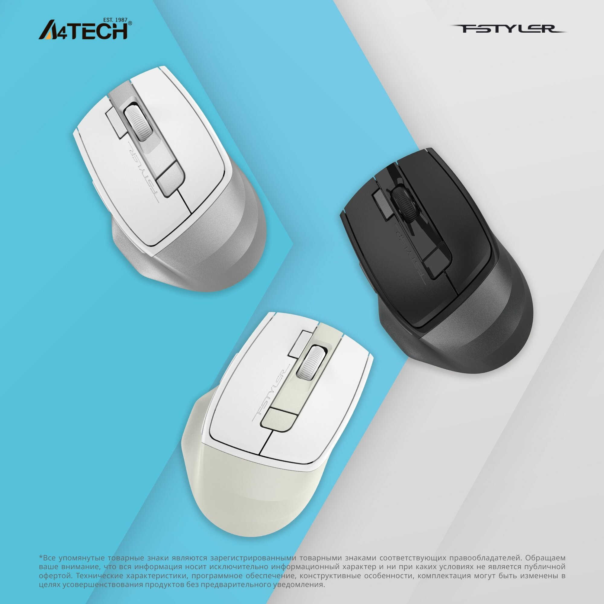 Мышь A4TECH Fstyler FB35, оптическая, беспроводная, USB, белый и серый [fb35 icy white]