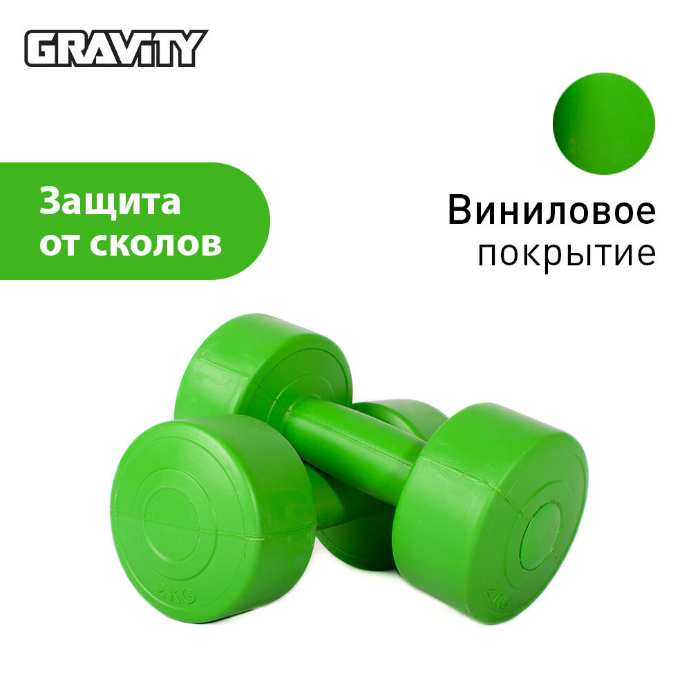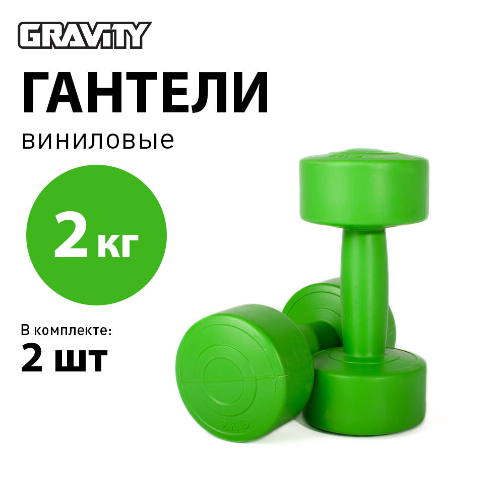 Виниловые гантели Gravity, круглые, 2 кг, пара, зеленый интересное: