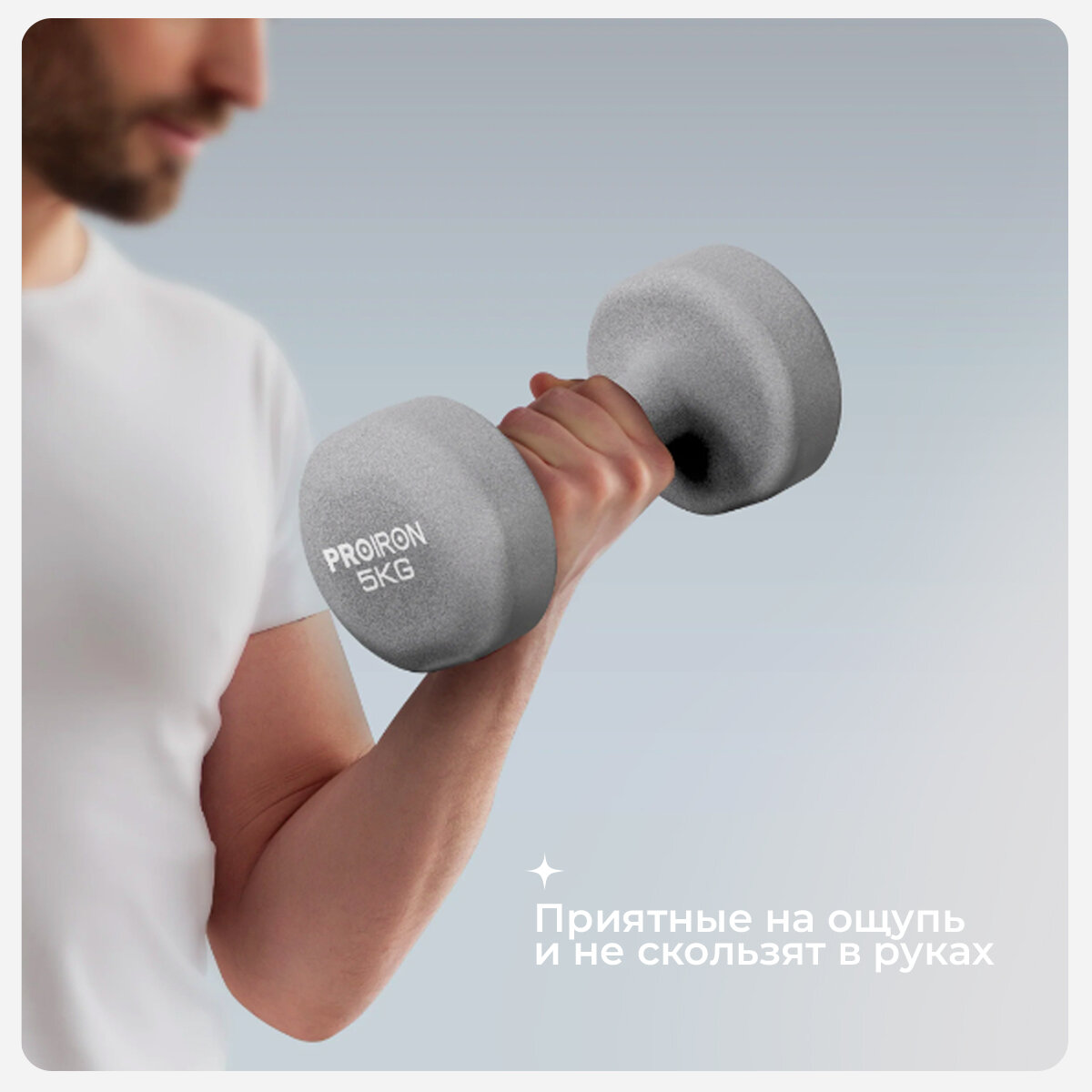 Купить Гантели 5 кг 2 штуки неопреновые PROIRON, набор для фитнеса, серые