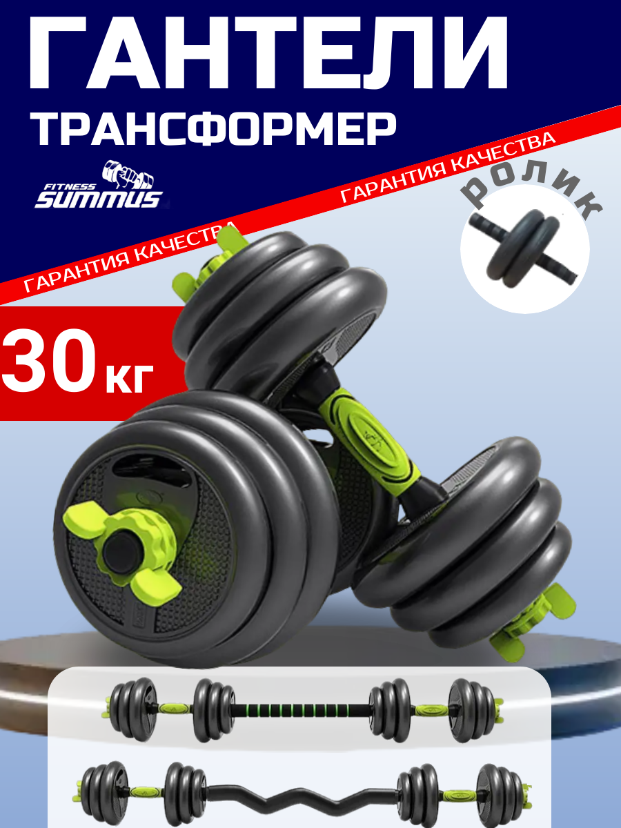 Набор разборных пластиковых гантелей Summus для фитнеса с коннектором для штанги прямым и W-образным 2 шт. по 15 кг, арт. 600-036 интересное: