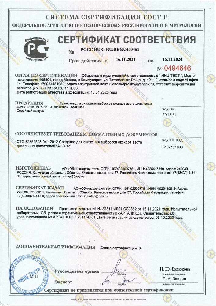 | Подробная комплектация | Жидкость для систем Sintec Мочевина AdBlue в пластиковой канистре |