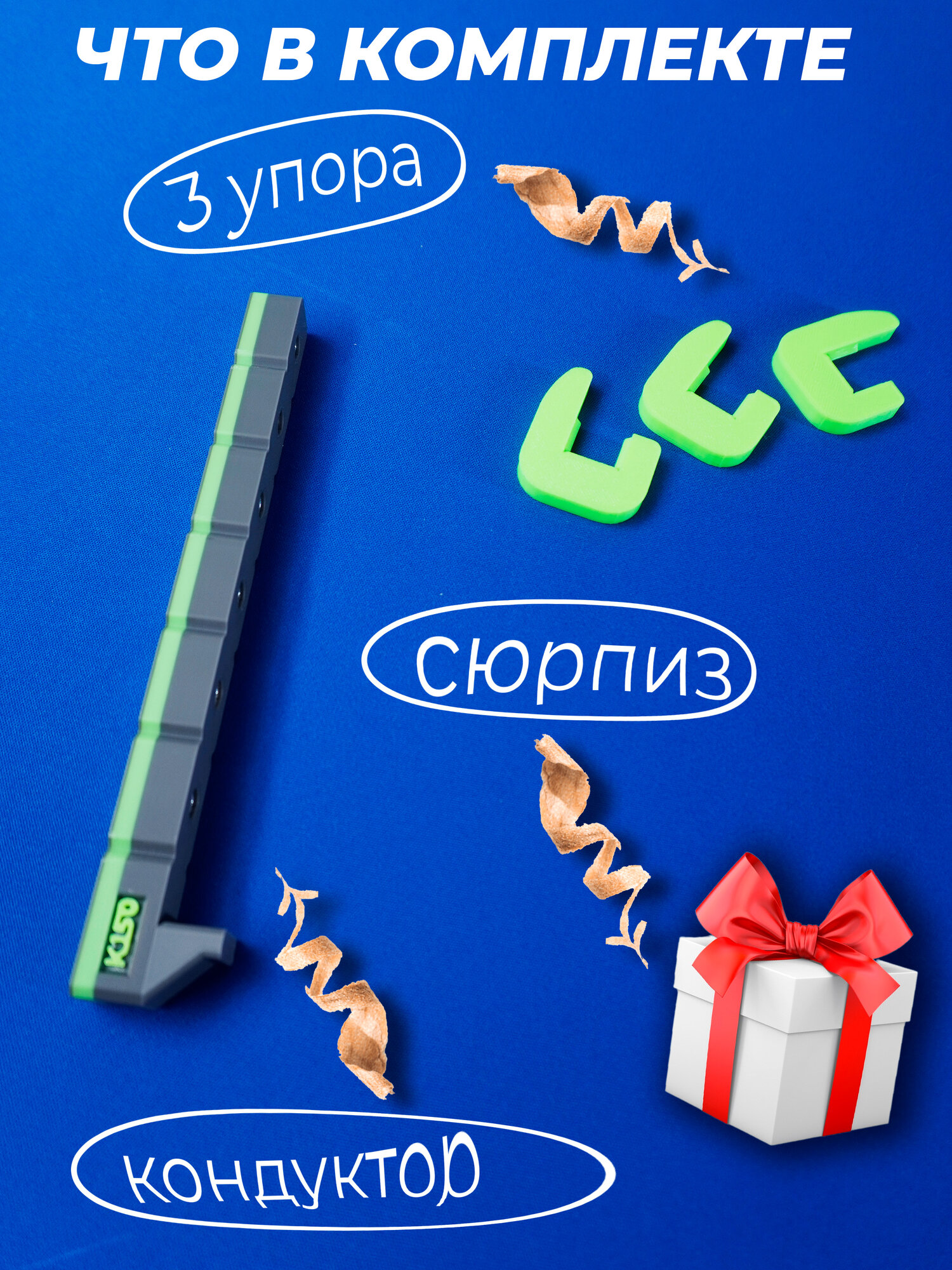 | Подробная комплектация | Кондуктор, упоры зелёного цвета 2 шт, упаковка. |