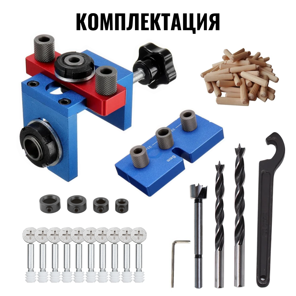 | Подробная комплектация | фиксатор для кондуктора, сверла диаметр 8/10 мм 2 шт, шестигранный ключ, сверло Форстнера диаметр15 мм, ключ для регулировки, круглые деревянные дюбеля 3 шт |