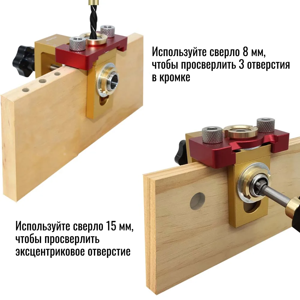 Кондуктор шаблон мебельный 3 в 1, для сверления отверстий 8/10/15 мм