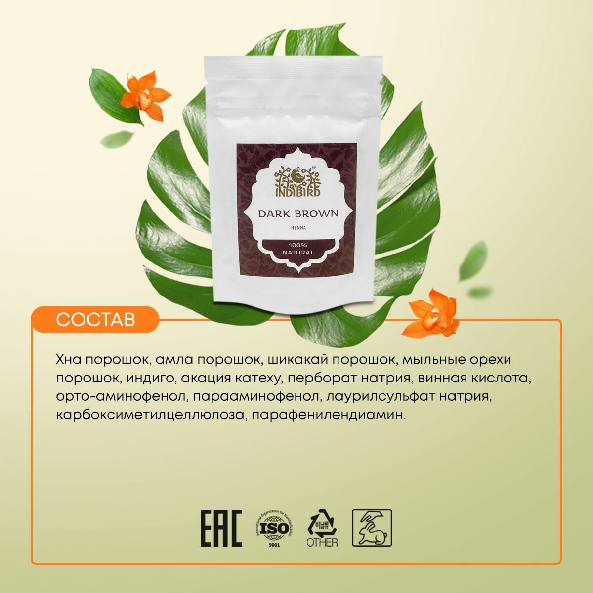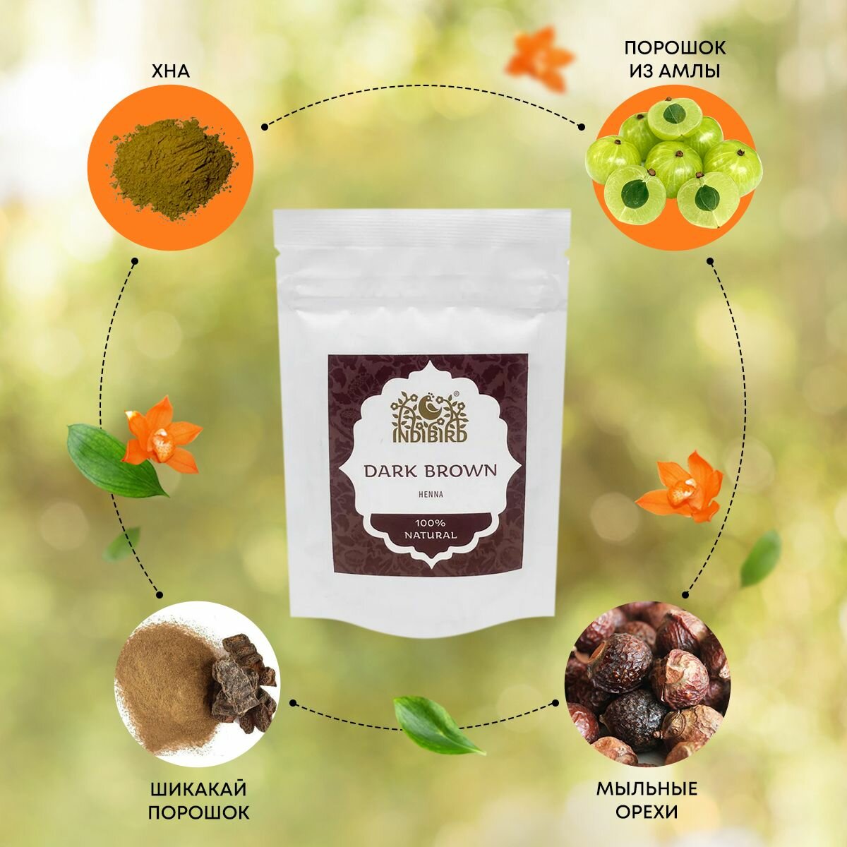 Хна Indibird Тёмно-коричневая (Dark Brown Henna) 100 г