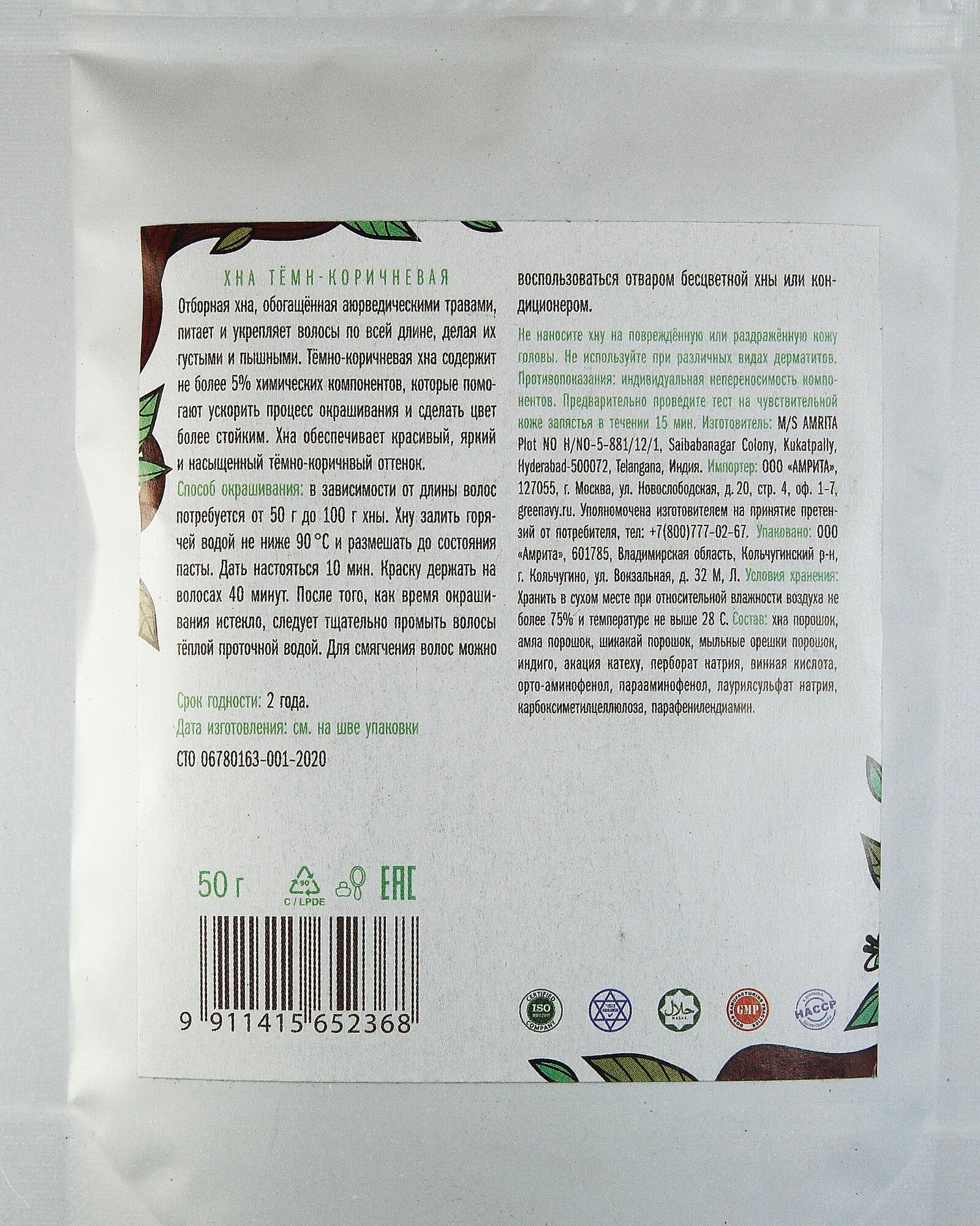 Хна тёмно-коричневая (Dark Brown Henna) 50 г