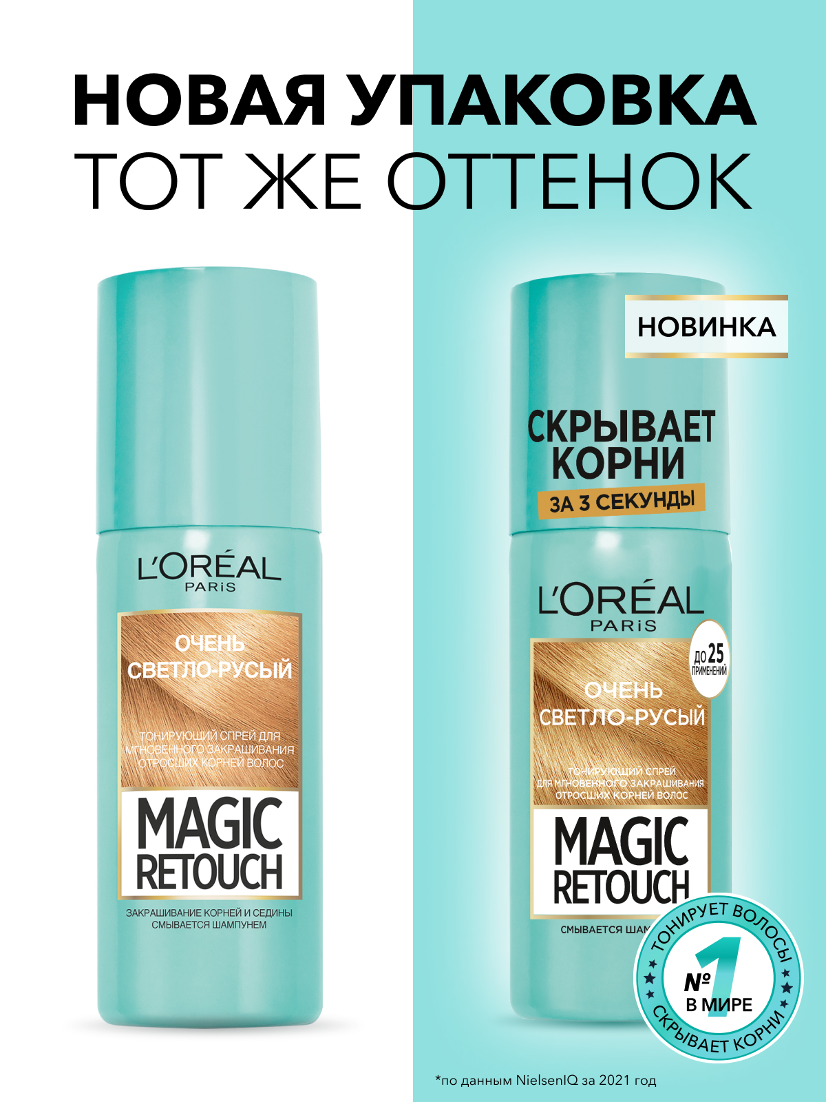 Купить L'Oreal Magic Retouch Тонирующий спрей для мгновенного закрашивания отросших корней, оттенок очень светло-русый, 75 мл