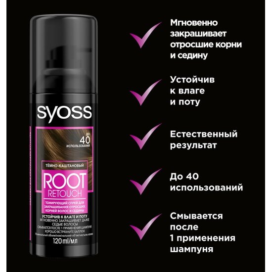 Купить Тонирующий спрей для корней SYOSS Root Retouch, тёмно-каштановый, 120 мл