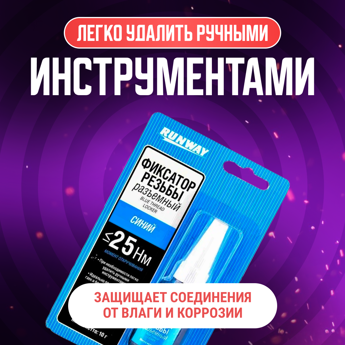 | Дополнительная информация | Герметик-паста RUNWAY для резьбовых соединений, съемный, синий, 10 г |