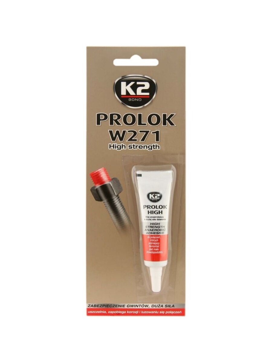 K2 B151 Фиксатор резьбы Prolok high, защищает резьбовое соединение от расшатывания и коррозии, красный, 6 мл