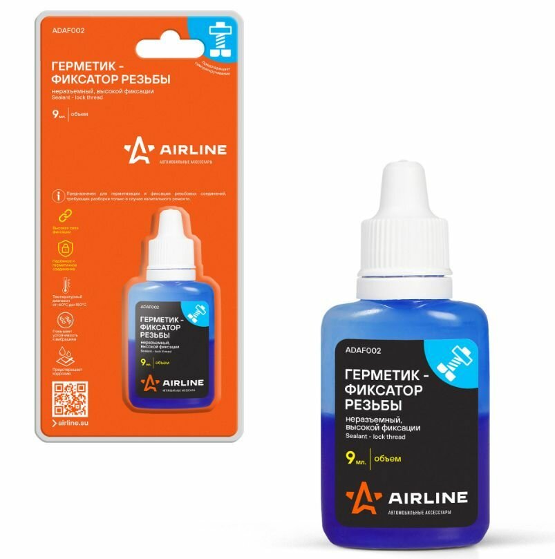 Фиксатор резьбы "AIRLINE" неразъемный, высокой фиксации, 9 мл., одност.блистер интересное: