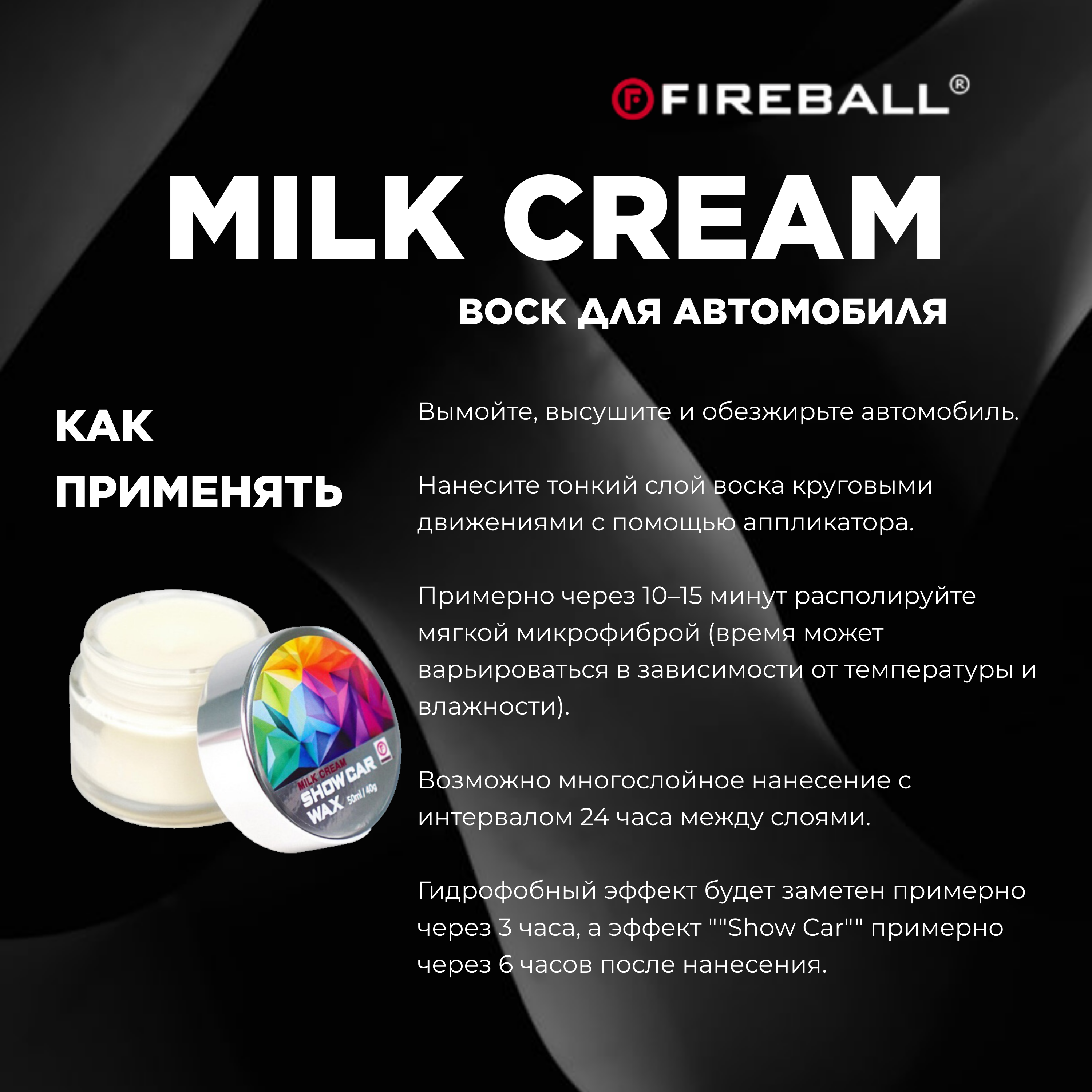 FIREBALL Воск карнауба MILK CREAM T1 +SiO2 50мл Show Car Wax (стекло) интересное: