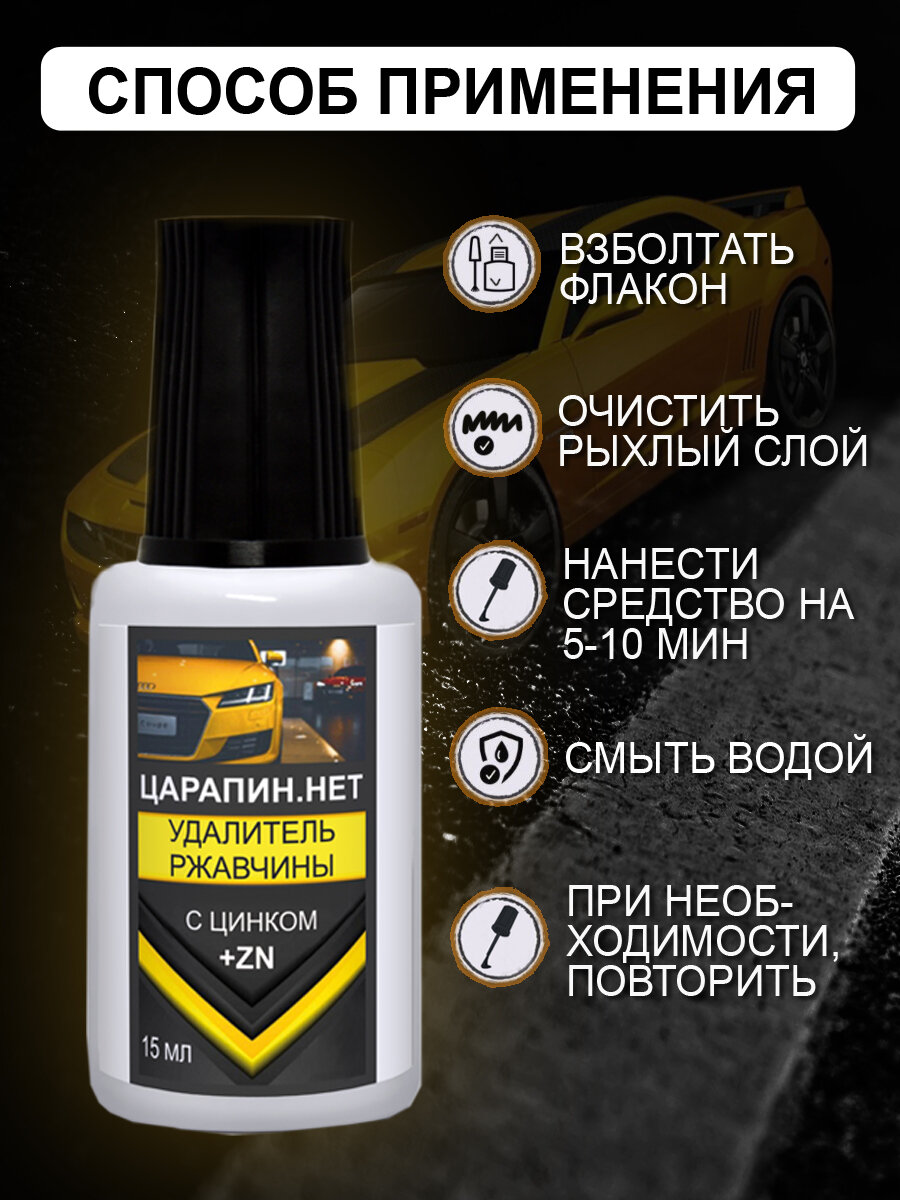 Преобразователь ржавчины, Удалитель ржавчины с цинком, 15 мл для сколов на авто интересное: