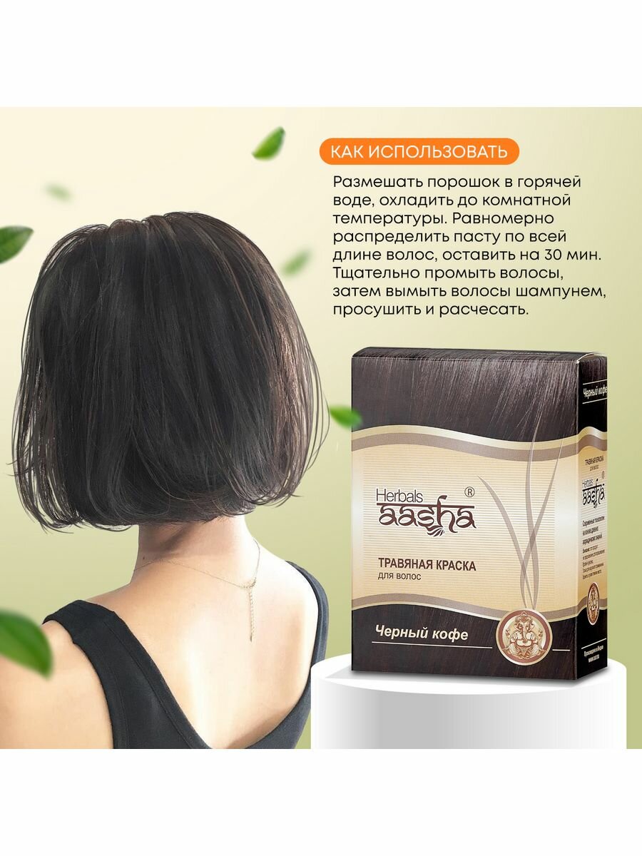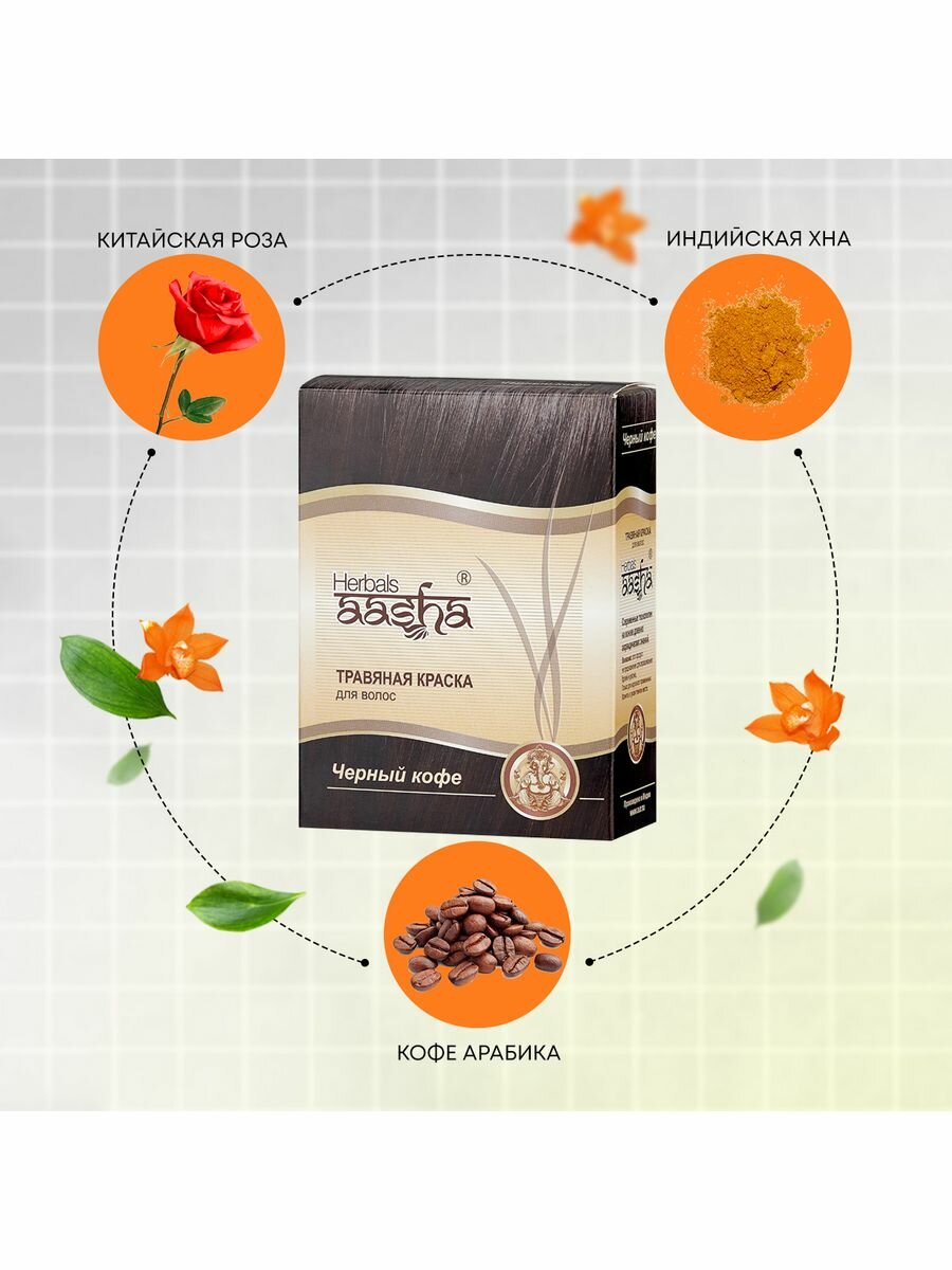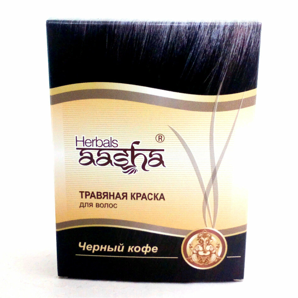Краска для волос травяная "Чёрный кофе" Ааша (на основе индийской хны) Aasha 6 пак. по 10 гр.