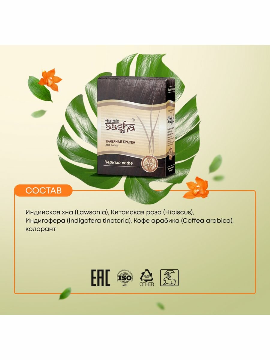 Aasha Herbals Травяная краска для волос на основе индийской хны, чёрный кофе
