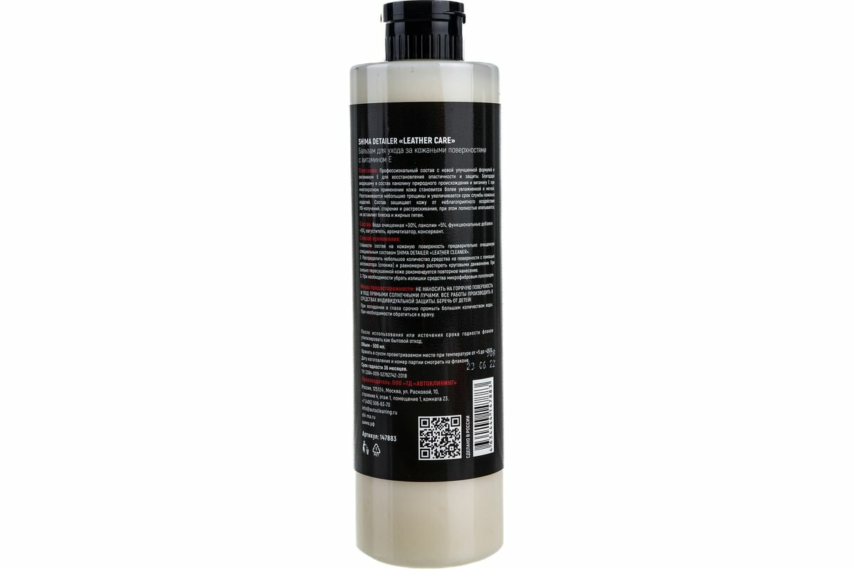 Кондиционер для кожи автомобиля, бальзам для ухода за кожаными изделиями с витамином Е SHIMA LEATHER CARE 0,5л