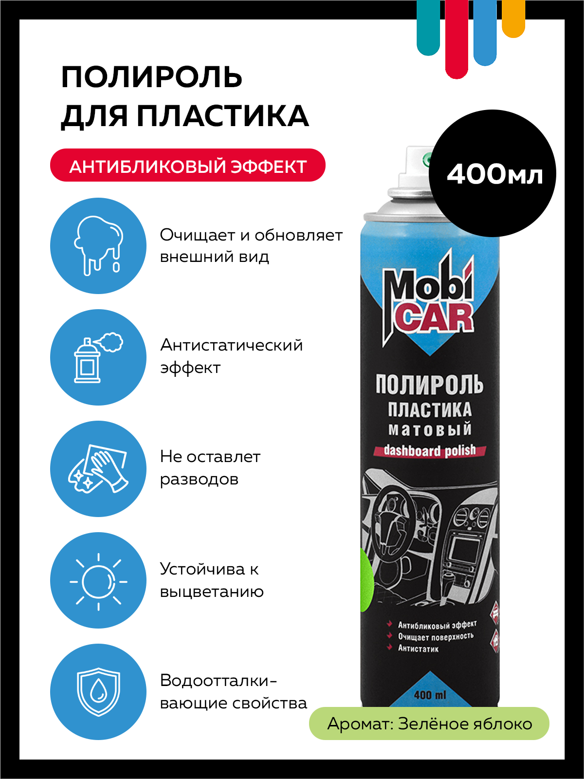 Полироль пластика матовый MobiCAR, 400 мл, зелёное яблоко
