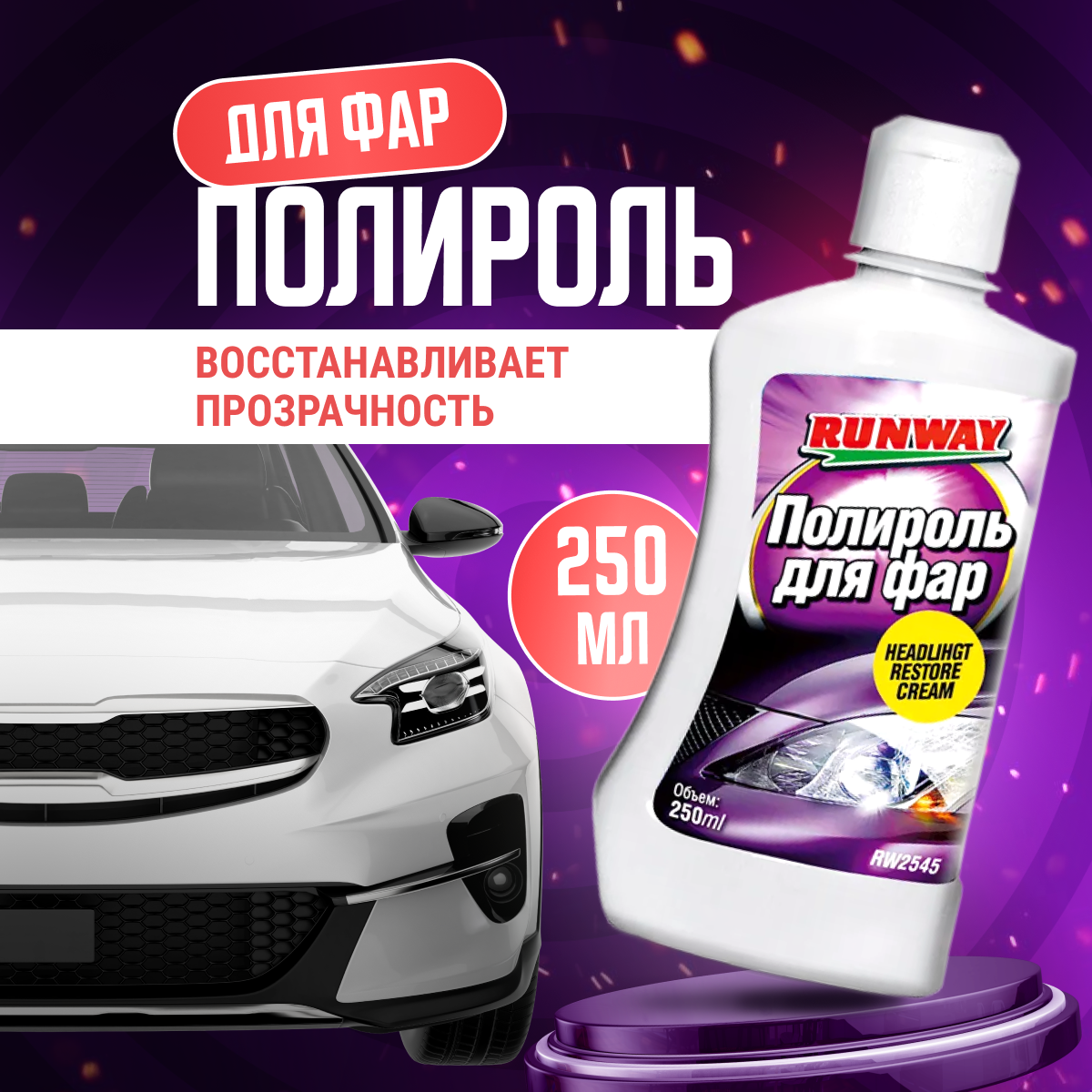 Полироль для фар RW2545 (2 шт), 0.25 л RUNWAY