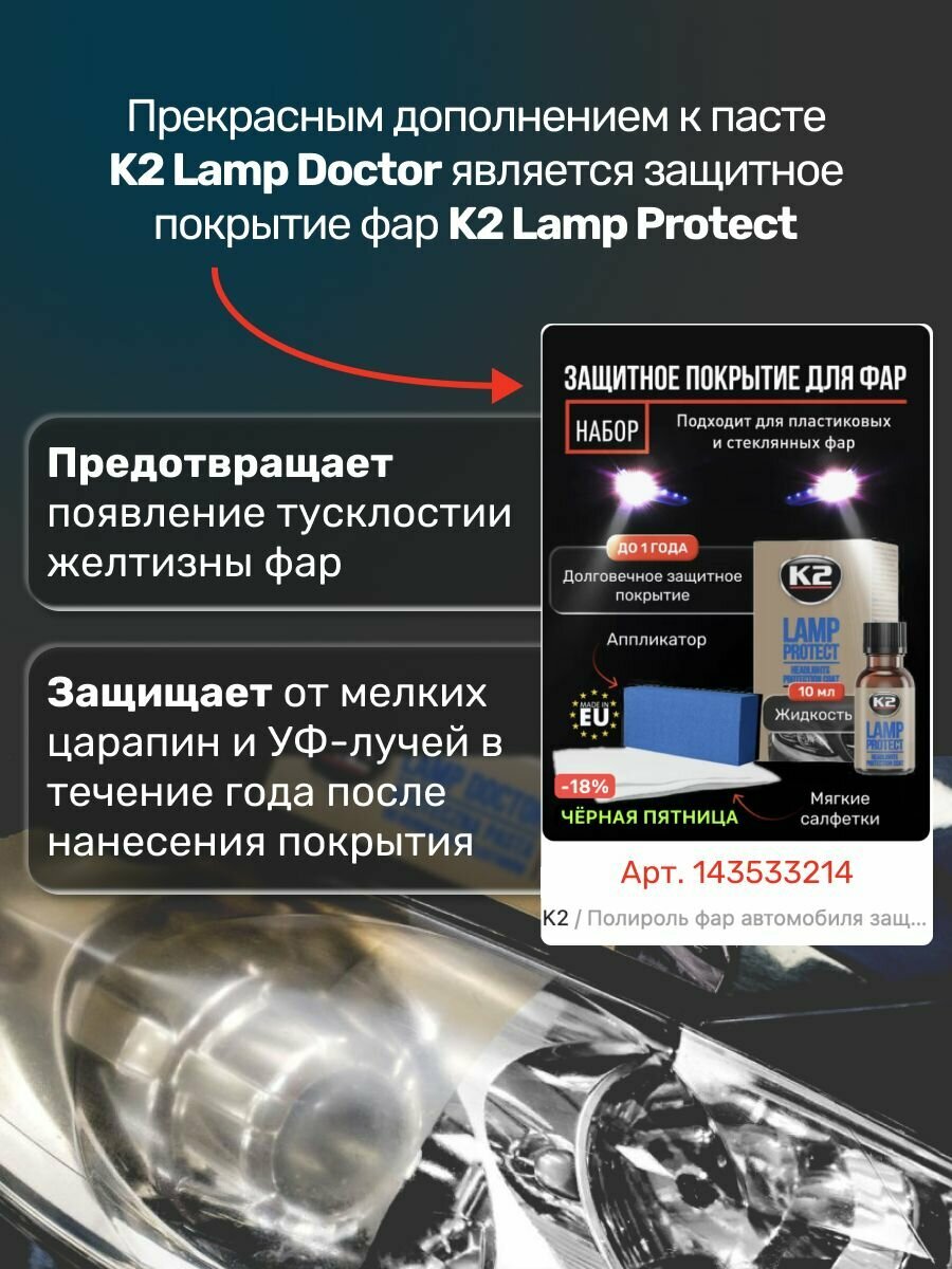 K2 Lamp Doctor - Полировальная паста для фар автомобиля, 60 гр. интересное:
