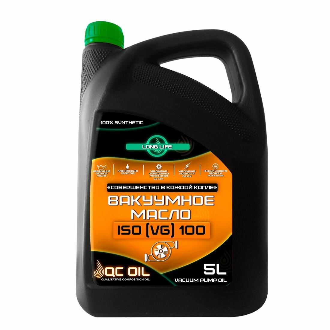 Вакуумное масло BM ISO(VG)100 синтетическое QC OIL Long Life металлоплакирующее, канистра 5л интересное: