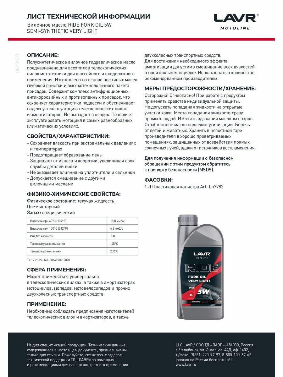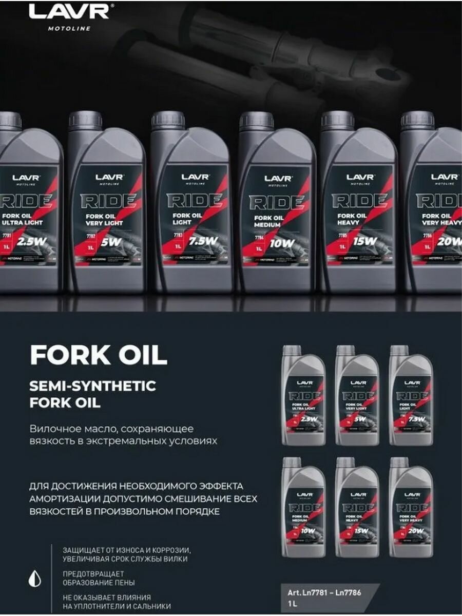 Вилочное масло LAVR MOTO RIDE Fork oil 5W интересное: