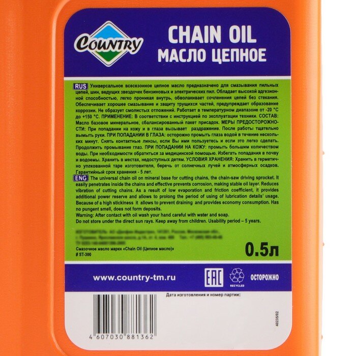 Масло для бензопил 3TON COUNTRY ST-300 минеральное 0,5 л 40235 интересное: