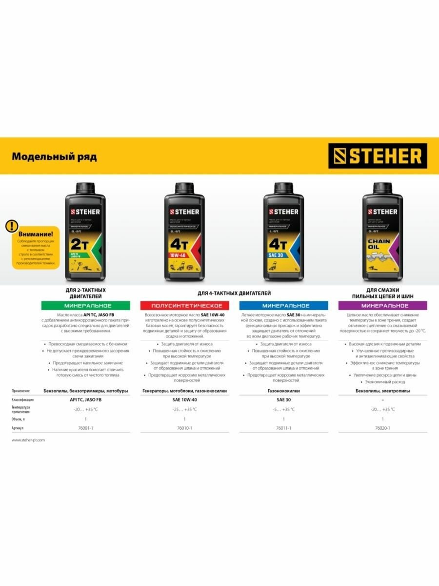 STEHER 1 л, цепное минеральное масло для бензо и электропил (76020-1) интересное: