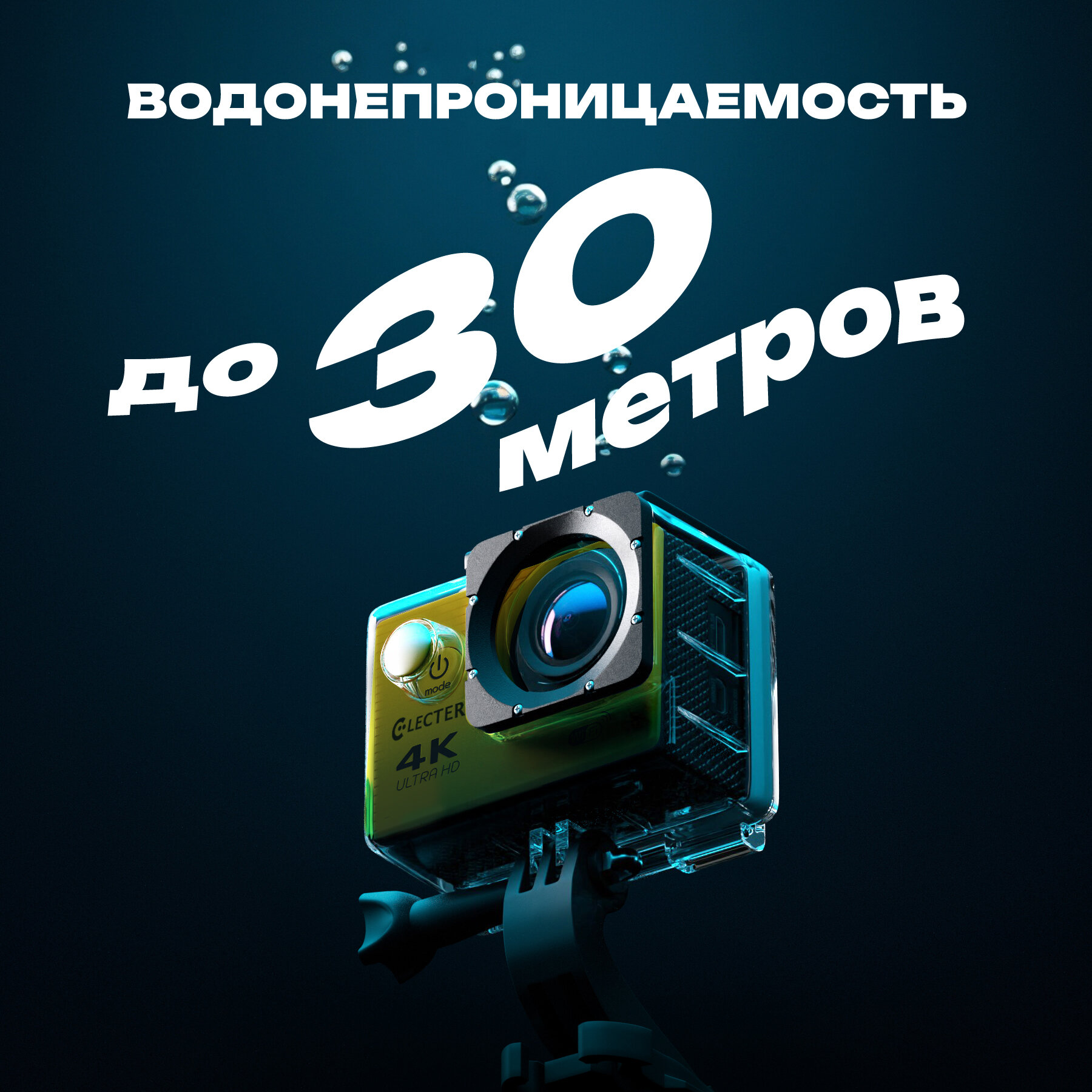 Экшен камера Electerra 4К, набор креплений, аквабокс, wi-fi, пульт ДУ интересное: