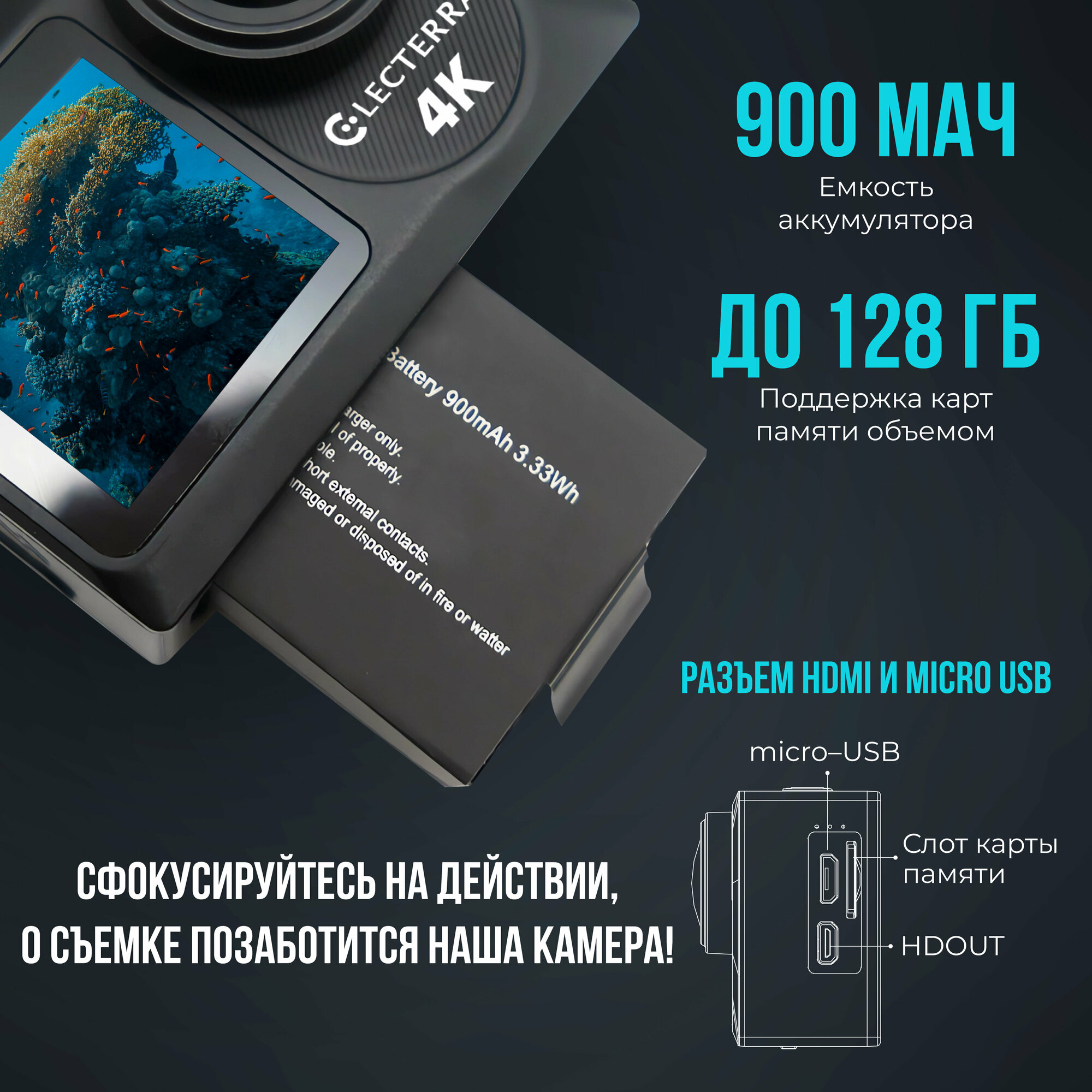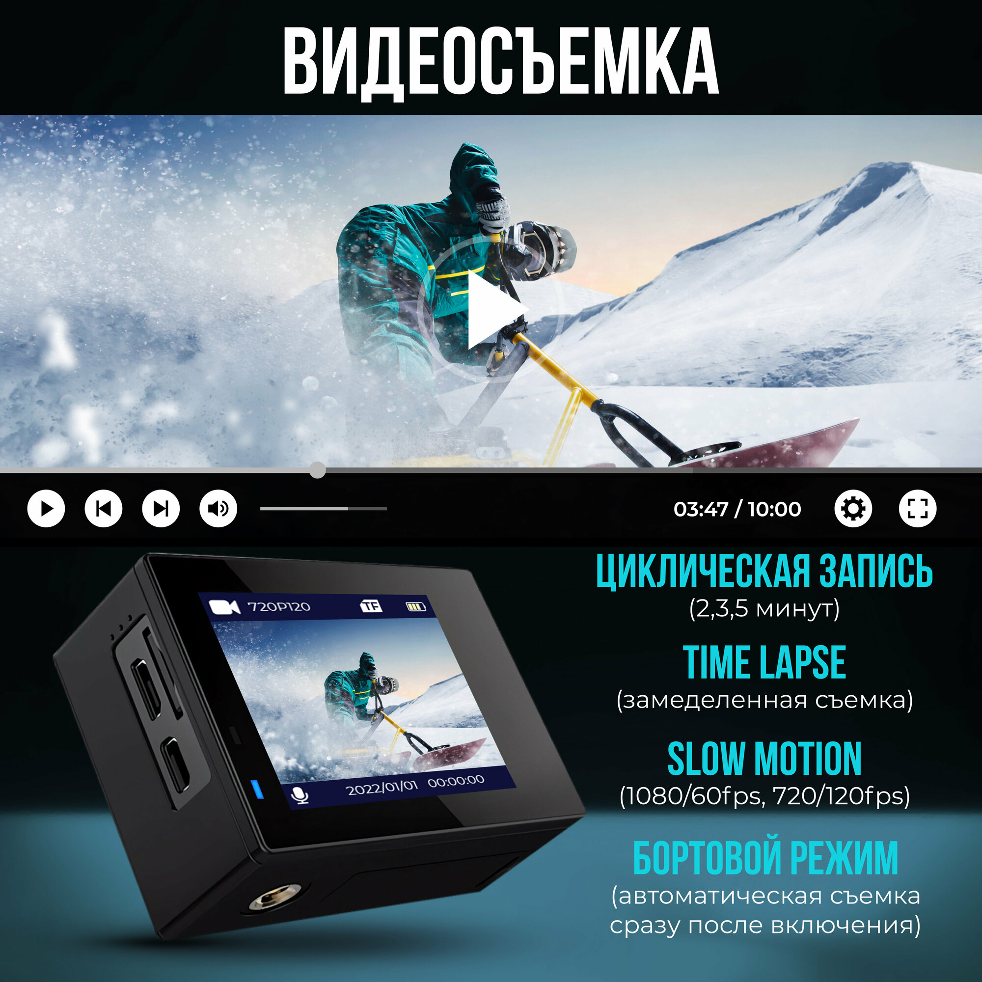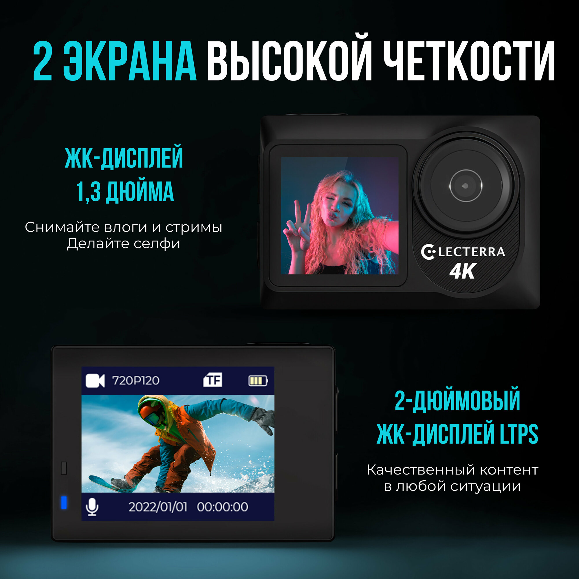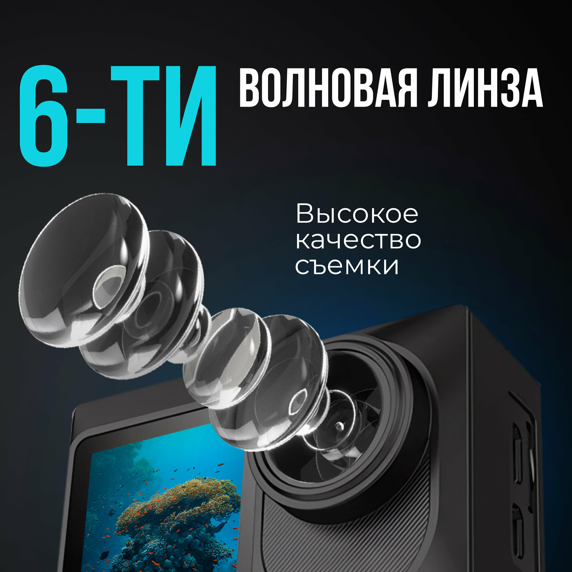 Купить Экшн камера 4К, 2 экрана, водонепроницаемый кейс, крепления